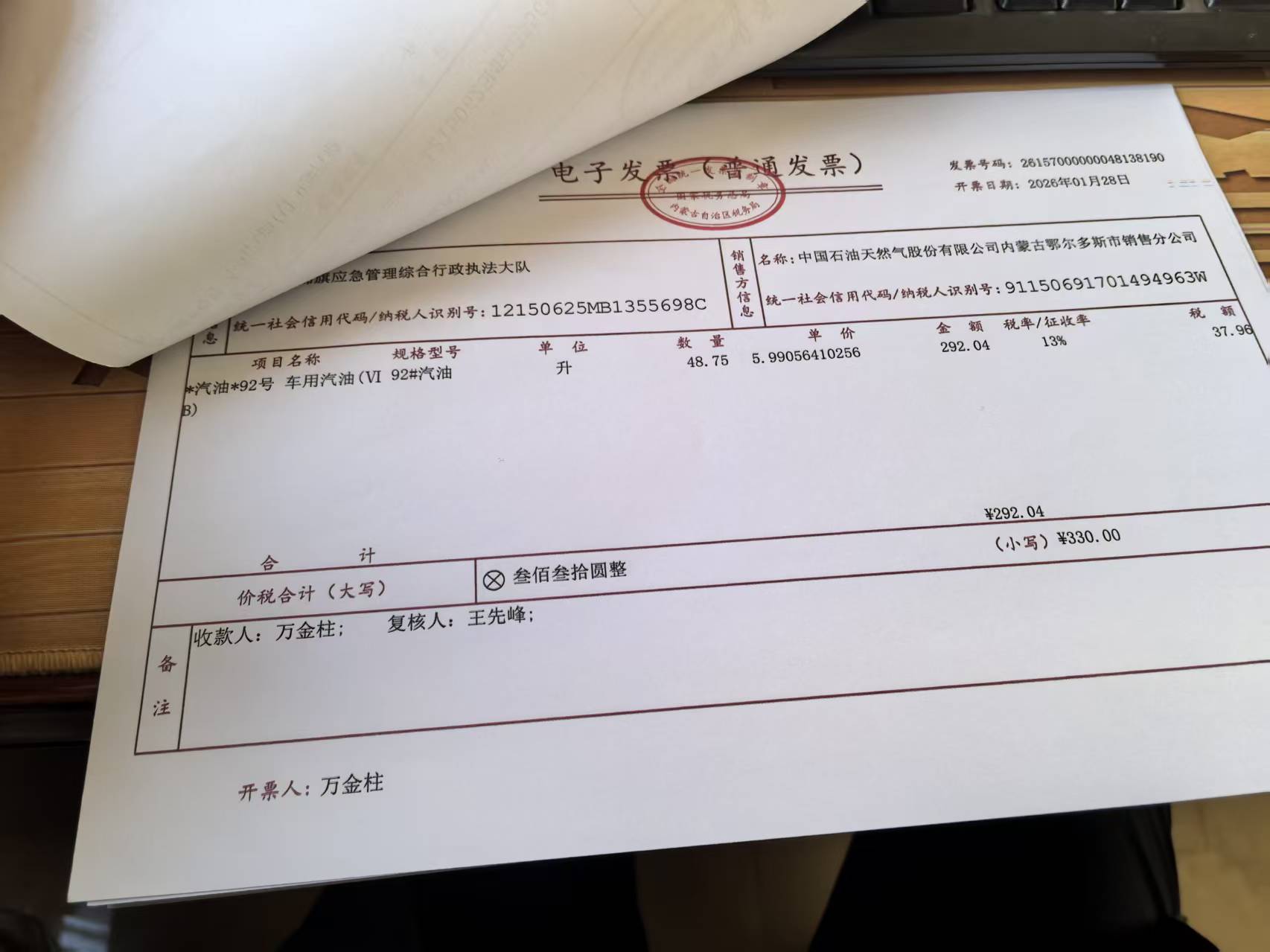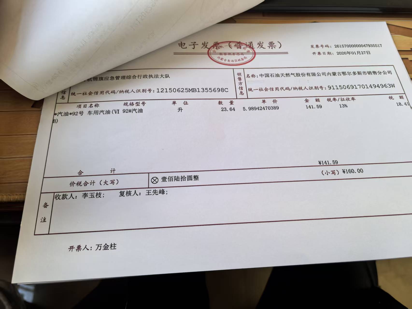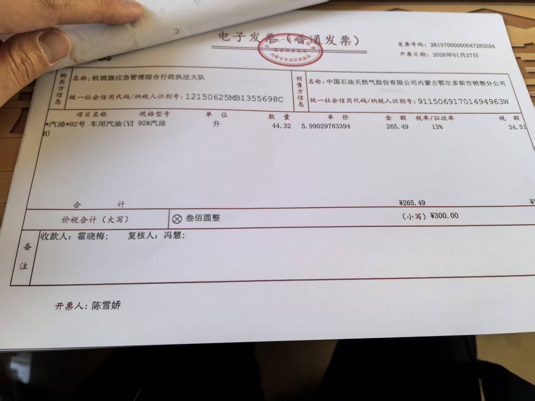 杭锦旗应急管理综合行政执法大队车辆加油政府采购合同公告
