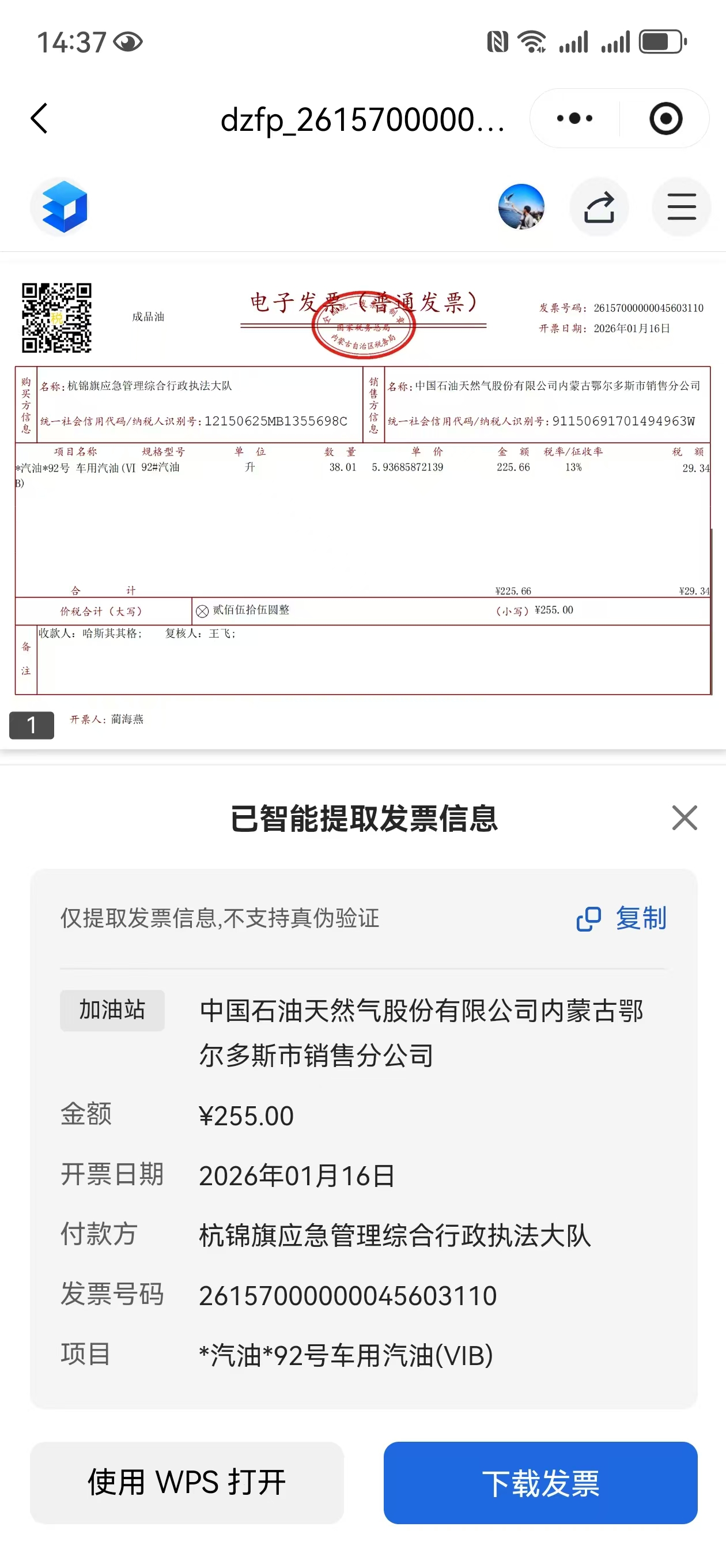 杭锦旗应急管理综合行政执法大队车辆加油政府采购合同公告