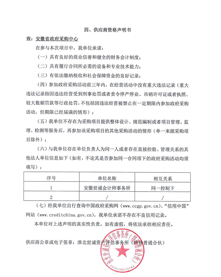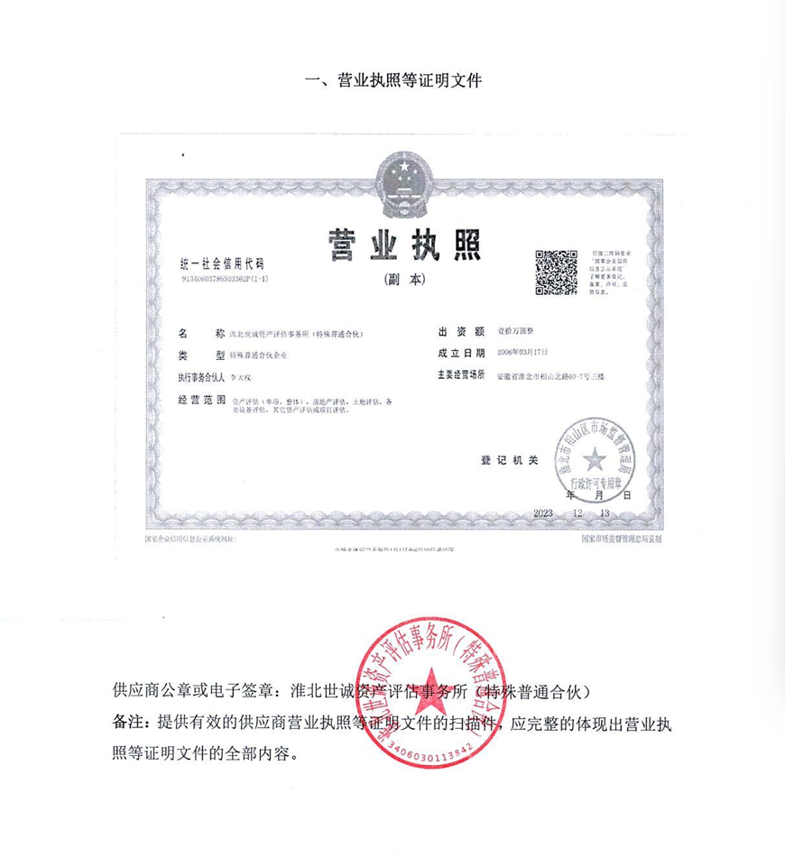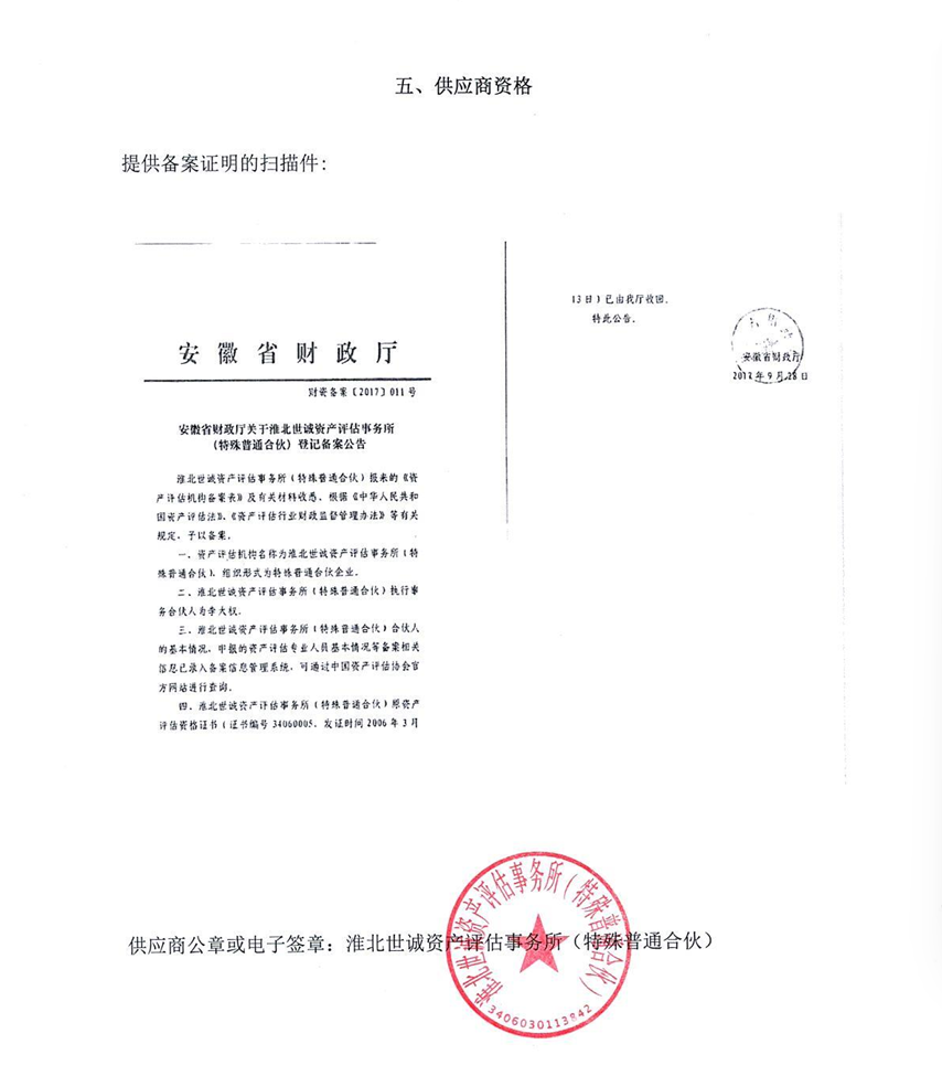 供应商名称:淮北世诚资产评估事务所(特殊普通合伙)