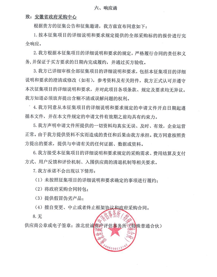 淮北世诚资产评估事务所(特殊普通合伙)*********年度安徽省省直单位资产评估开放式框架协议