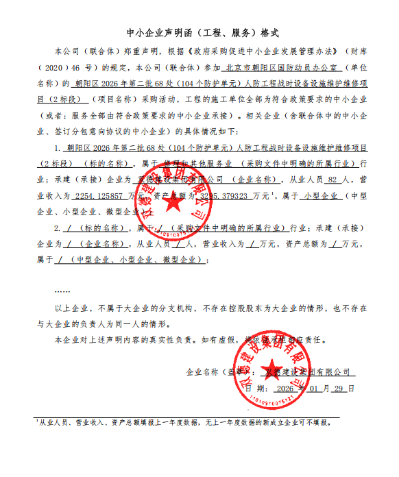 [朝阳区]朝阳区2026年第二批68处(104个防护单元)人防工程战时设备设施维护维修项目(2标段)中标公告
