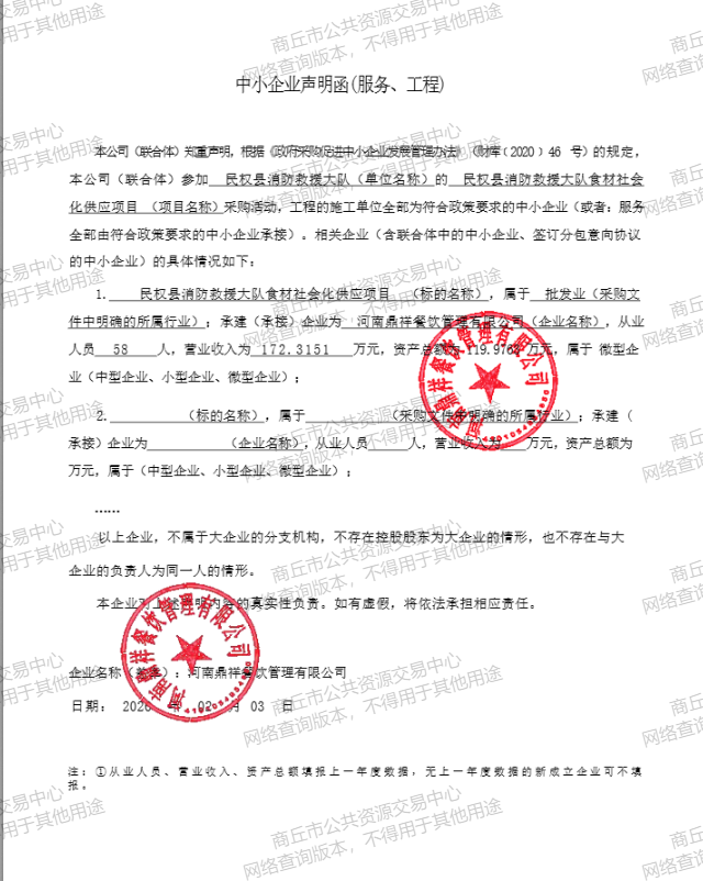 | *、采购项目名称:民权县消防救援大队食材社会化供应项目 | |||||||||||||||||||||||||||||||