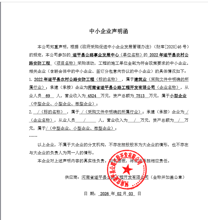 遂平县公路事业发展中心2022年遂平县农村公路安防工程-成交公告