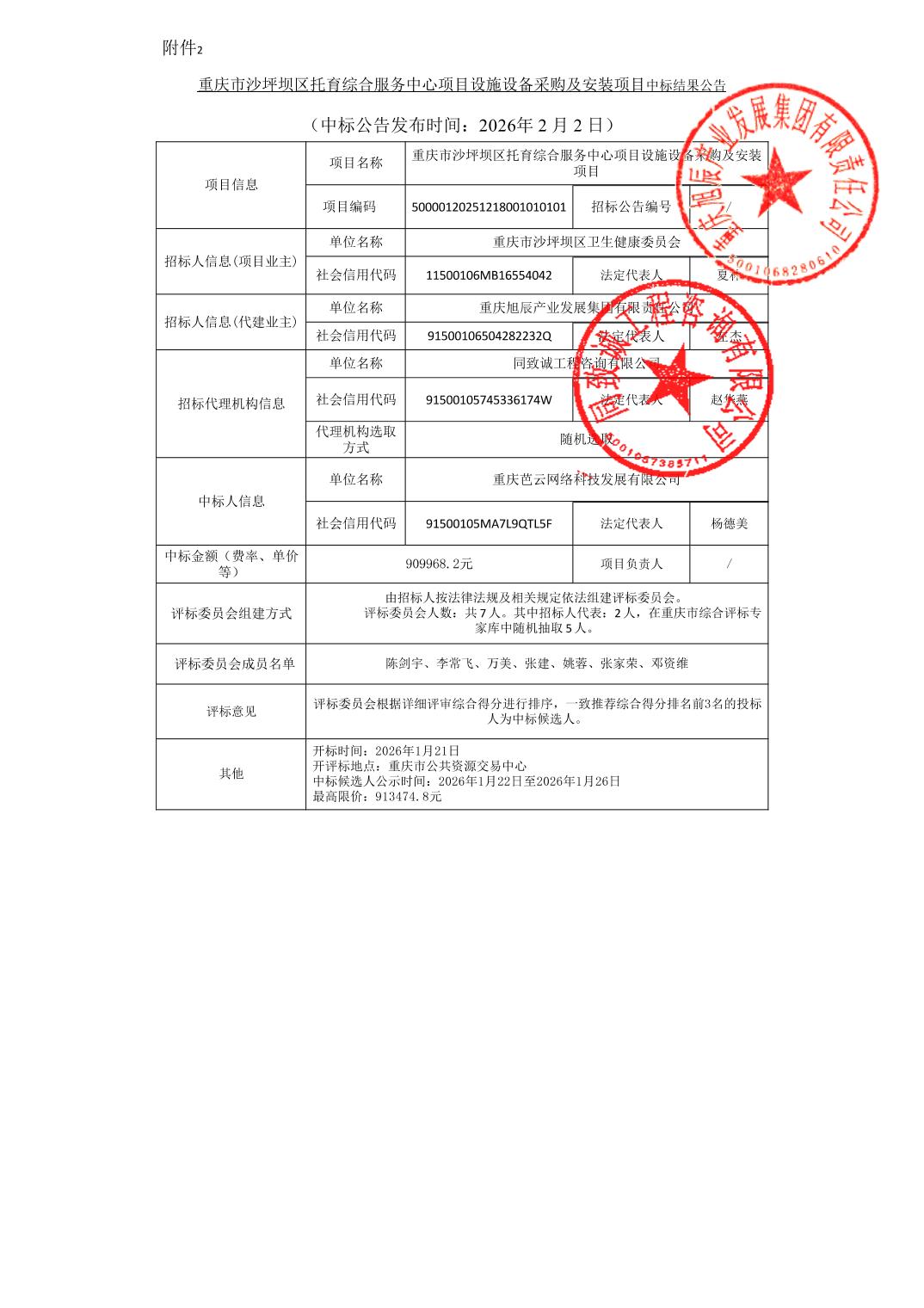 | 名称: | 重庆市沙坪坝区托育综合服务中心项目设施设备采购及安装项目中标结果公告 | ||||