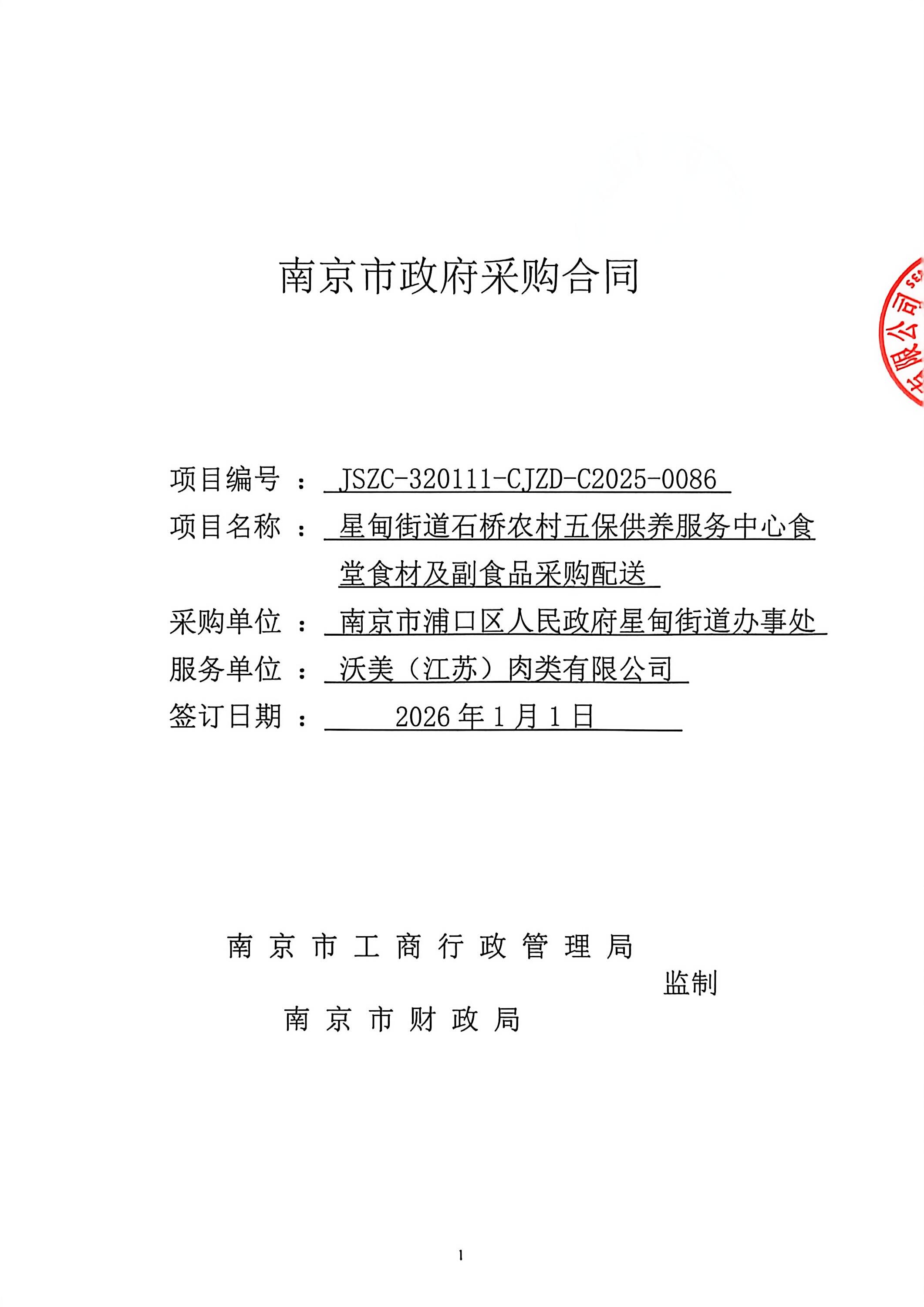 | 合同名称 | 星甸街道石桥农村五保供养服务中心食堂食材及副食品采购配送 |