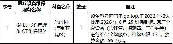 根据医院工作需要,需对以下医疗设备维保服务进行市场调研,请有相关医疗设备维保服务信息且具有合法合格资质的供应商前来我院进行产品介绍。
