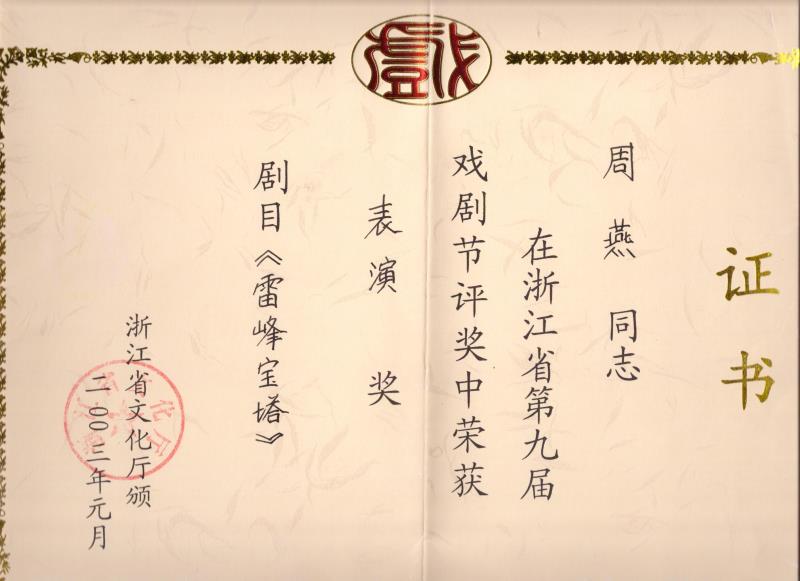二级演职人员或获设区市级专业奖项荣誉演员:*