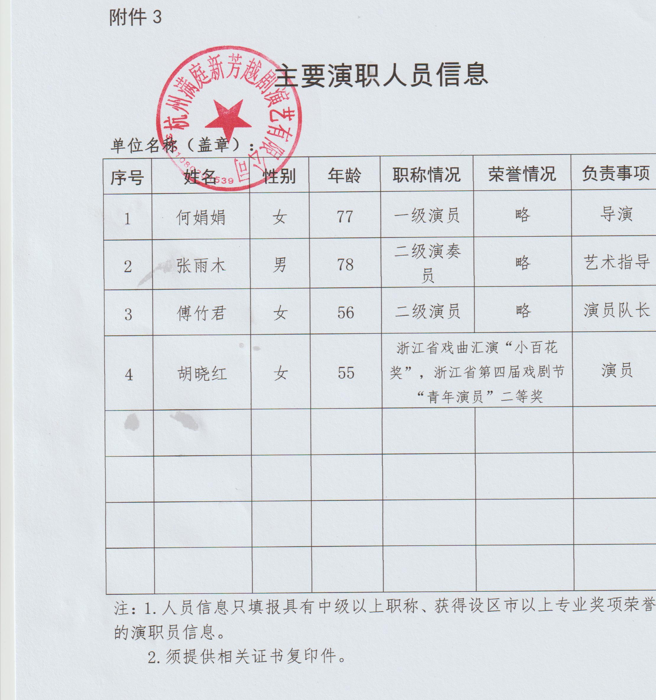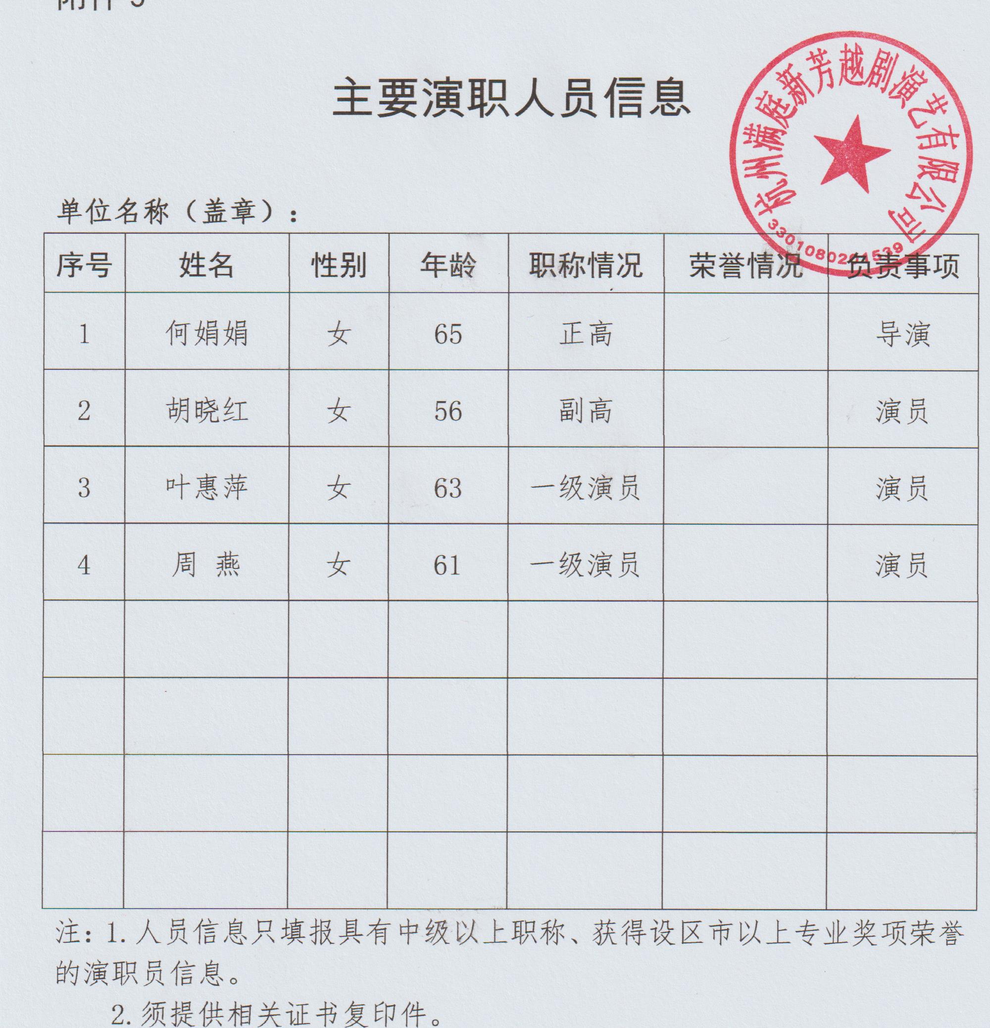 演职人员信息(按《公告》附件*格式填写):主要演职人员信息 ***.***