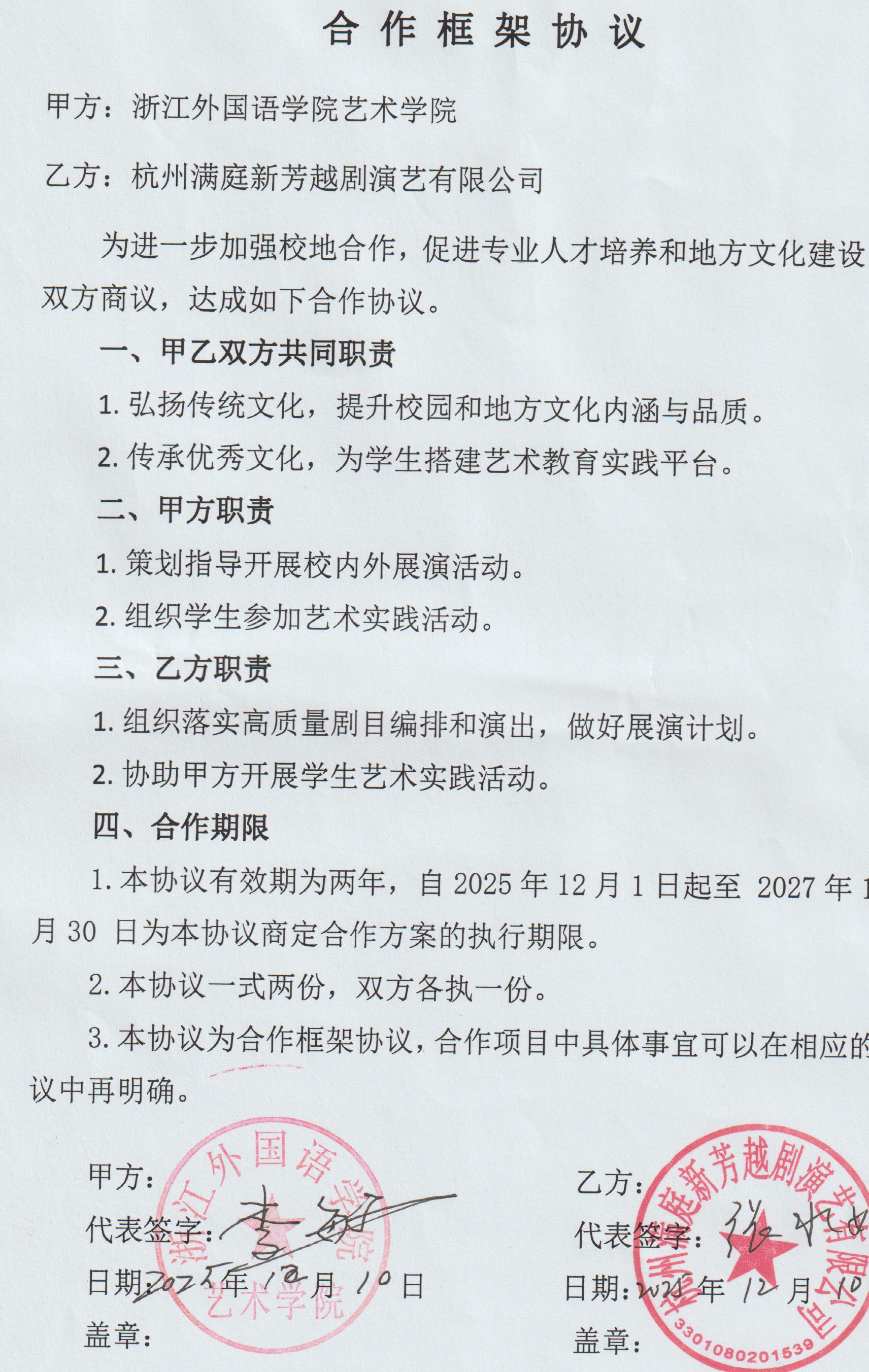 **—*浙江外国语学院艺木学院合作框架协议 ***.***