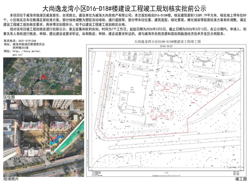 大尚逸龙湾小区D16-D18#楼建设工程竣工规划核实批前公示