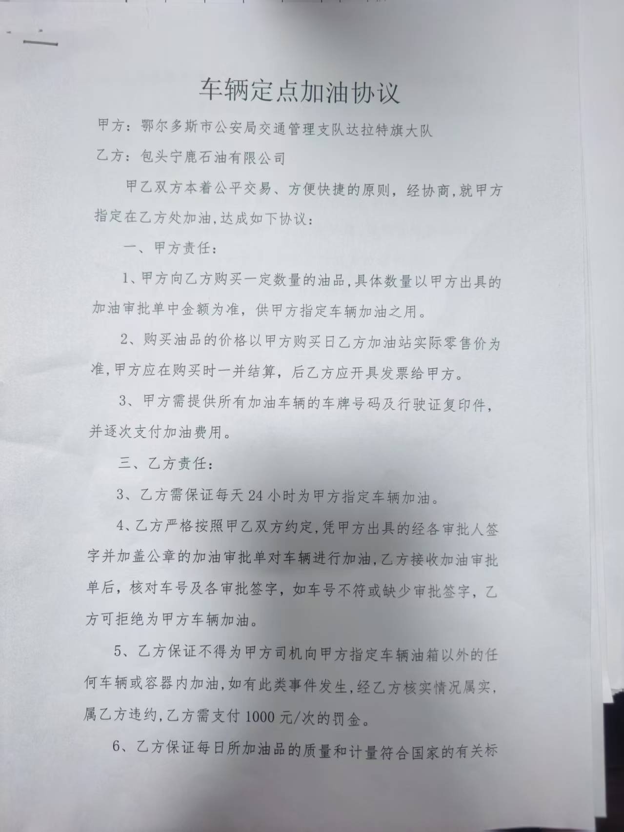鄂尔多斯市公安局交通管理支队达拉特旗大队开发区中队包头宁鹿加油站加油项目合同书政府采购合同公告