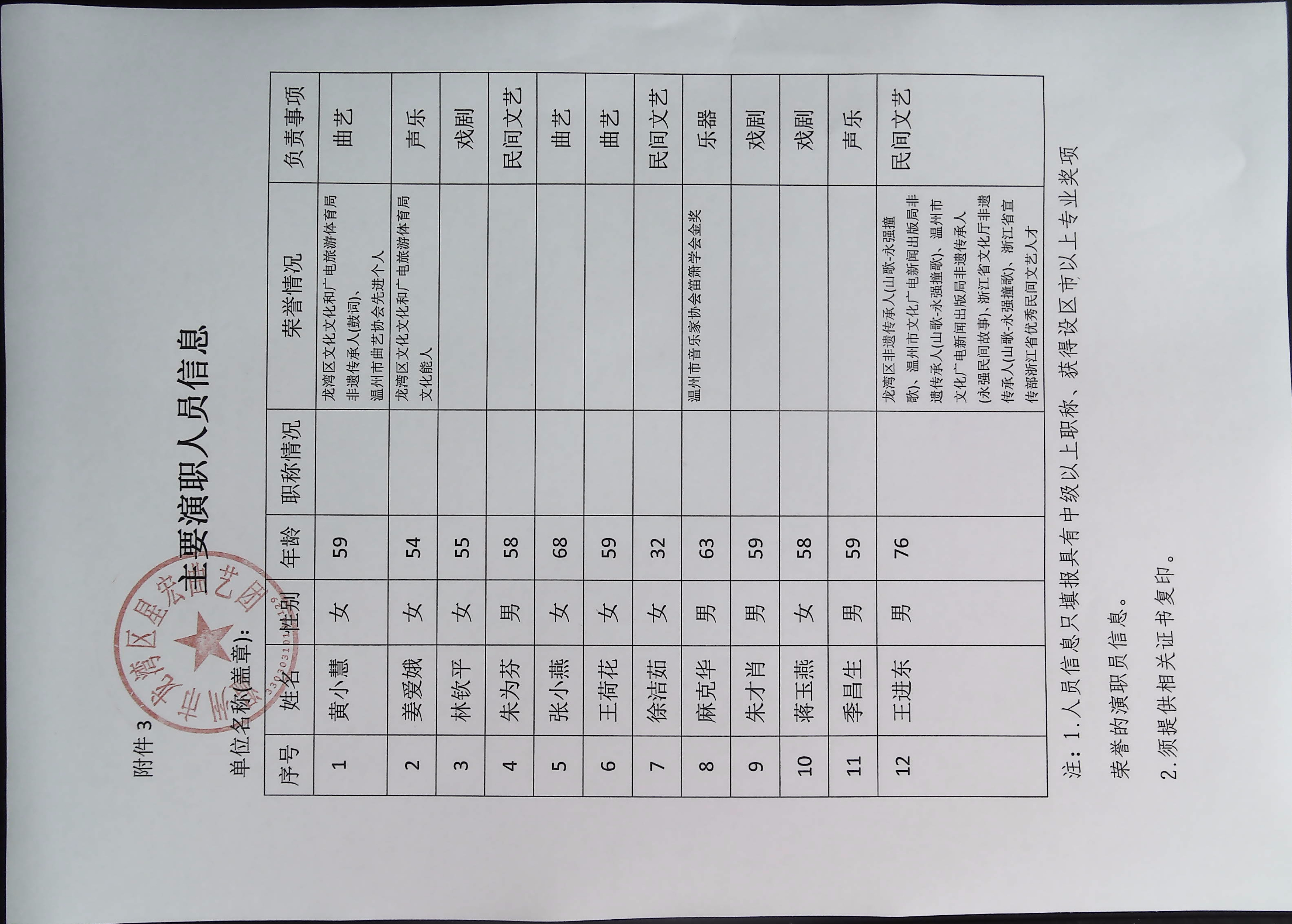 演职人员信息(按《公告》附件*格式填写):主要演职人员信息*.***