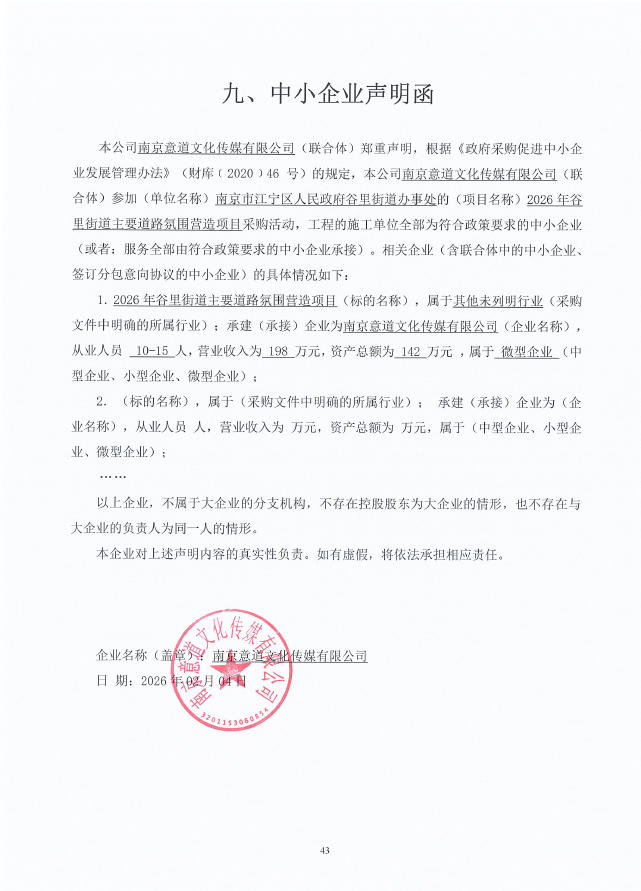 [江宁区]2026年谷里街道主要道路氛围营造项目成交公告