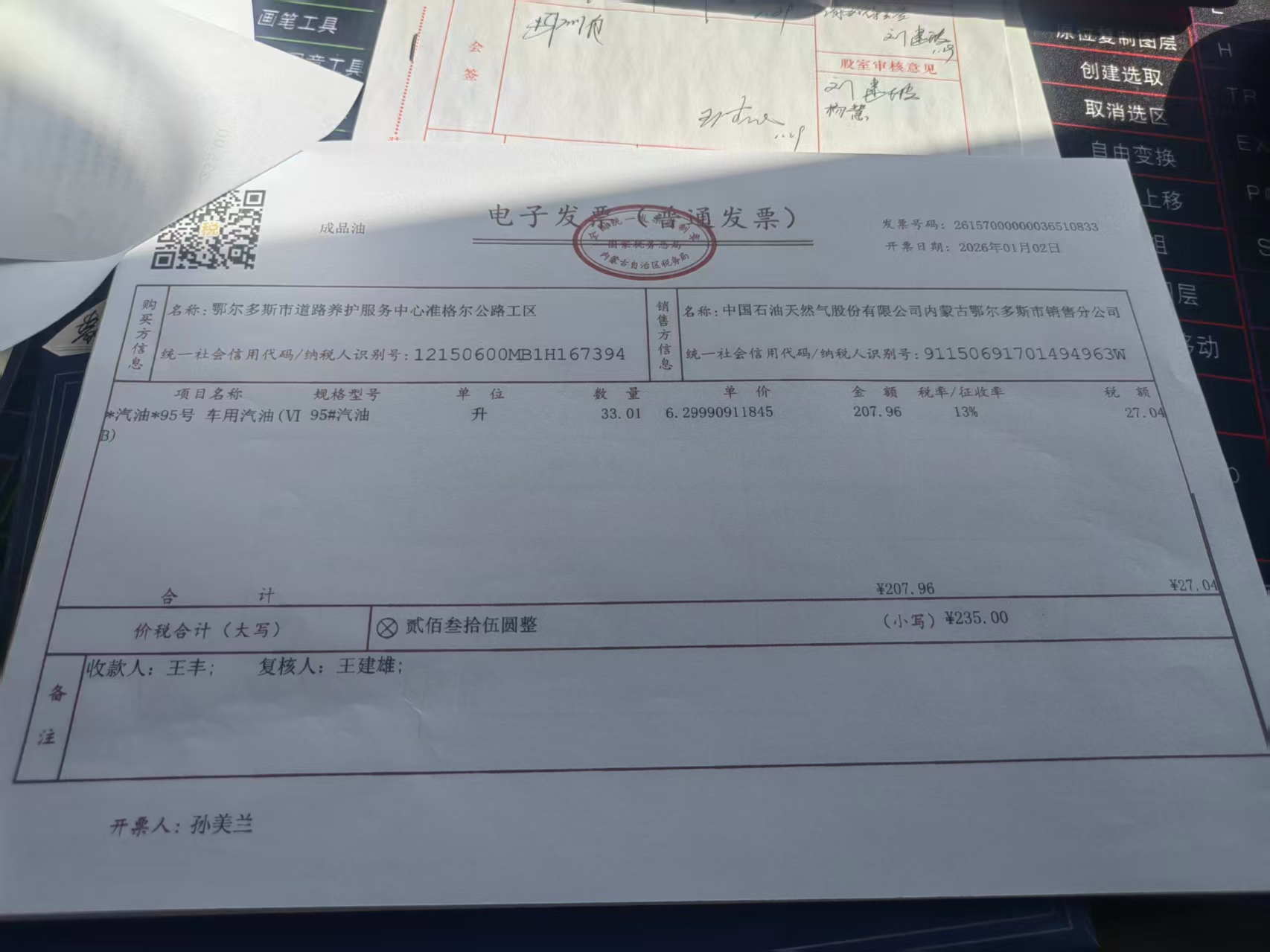 鄂尔多斯市道路养护服务中心准格尔公路工区蒙KP697G 1月油料费(赵军权)政府采购合同公告