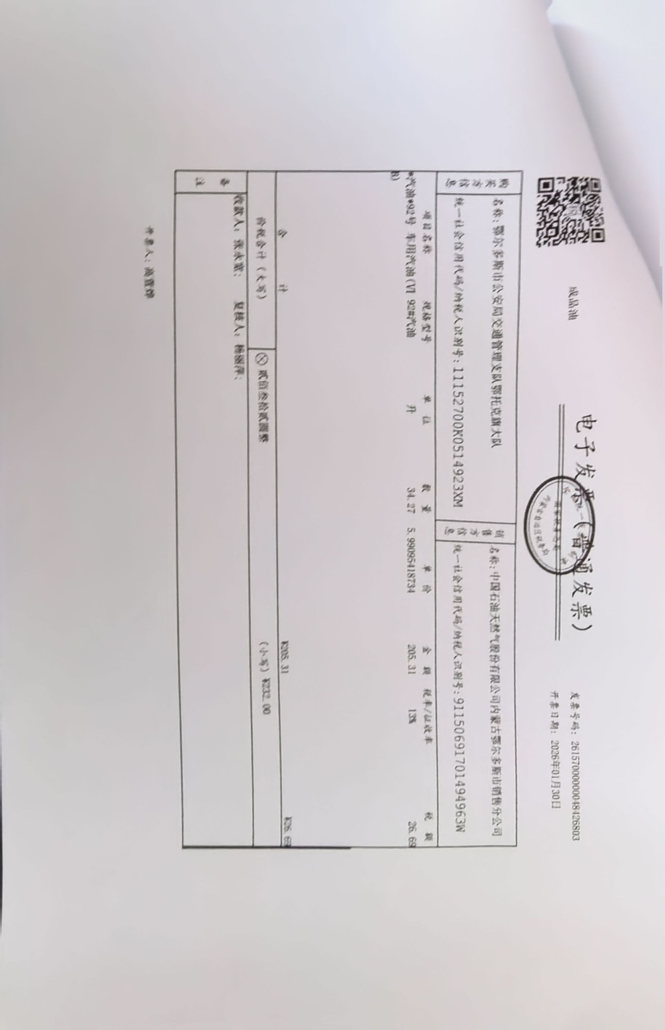 鄂尔多斯市公安局交通管理支队鄂托克旗大队鄂旗交管大队车辆燃油费政府采购合同公告