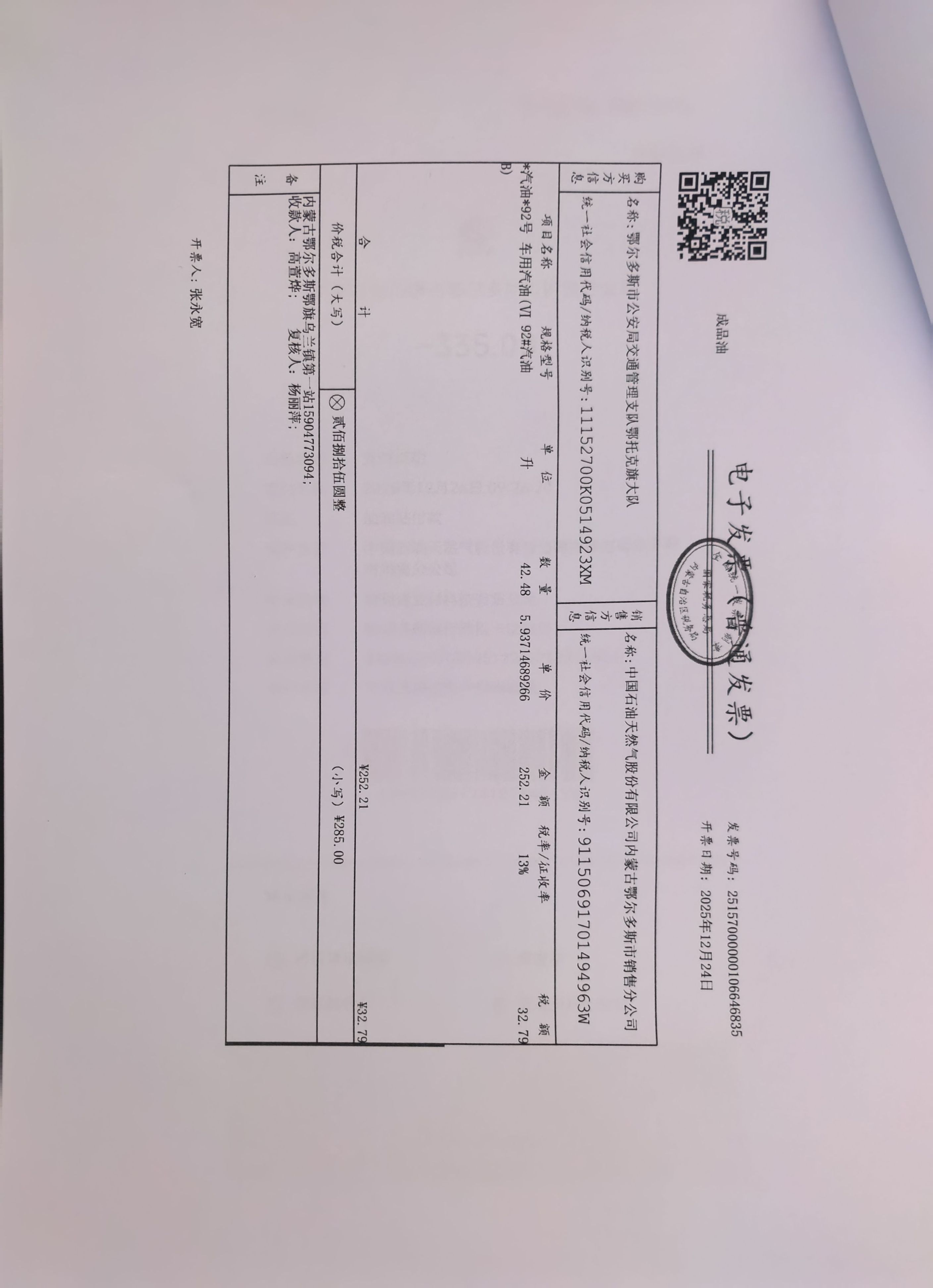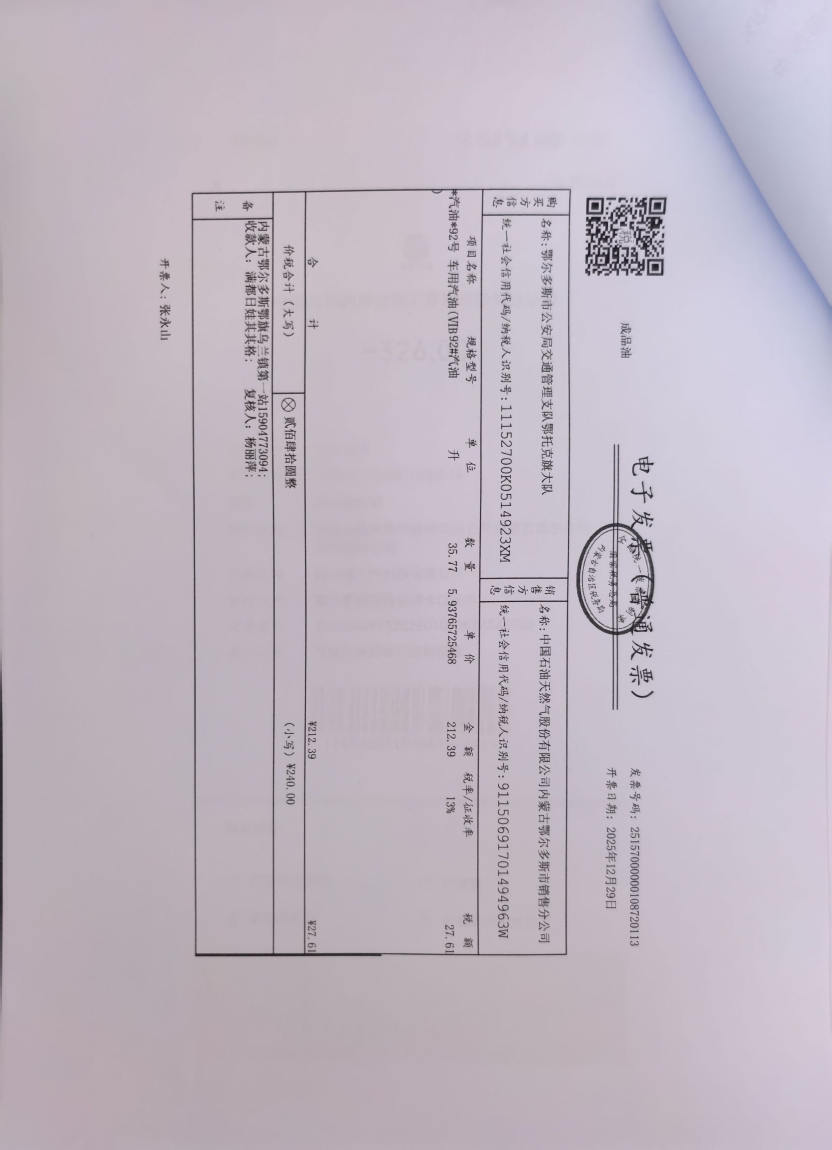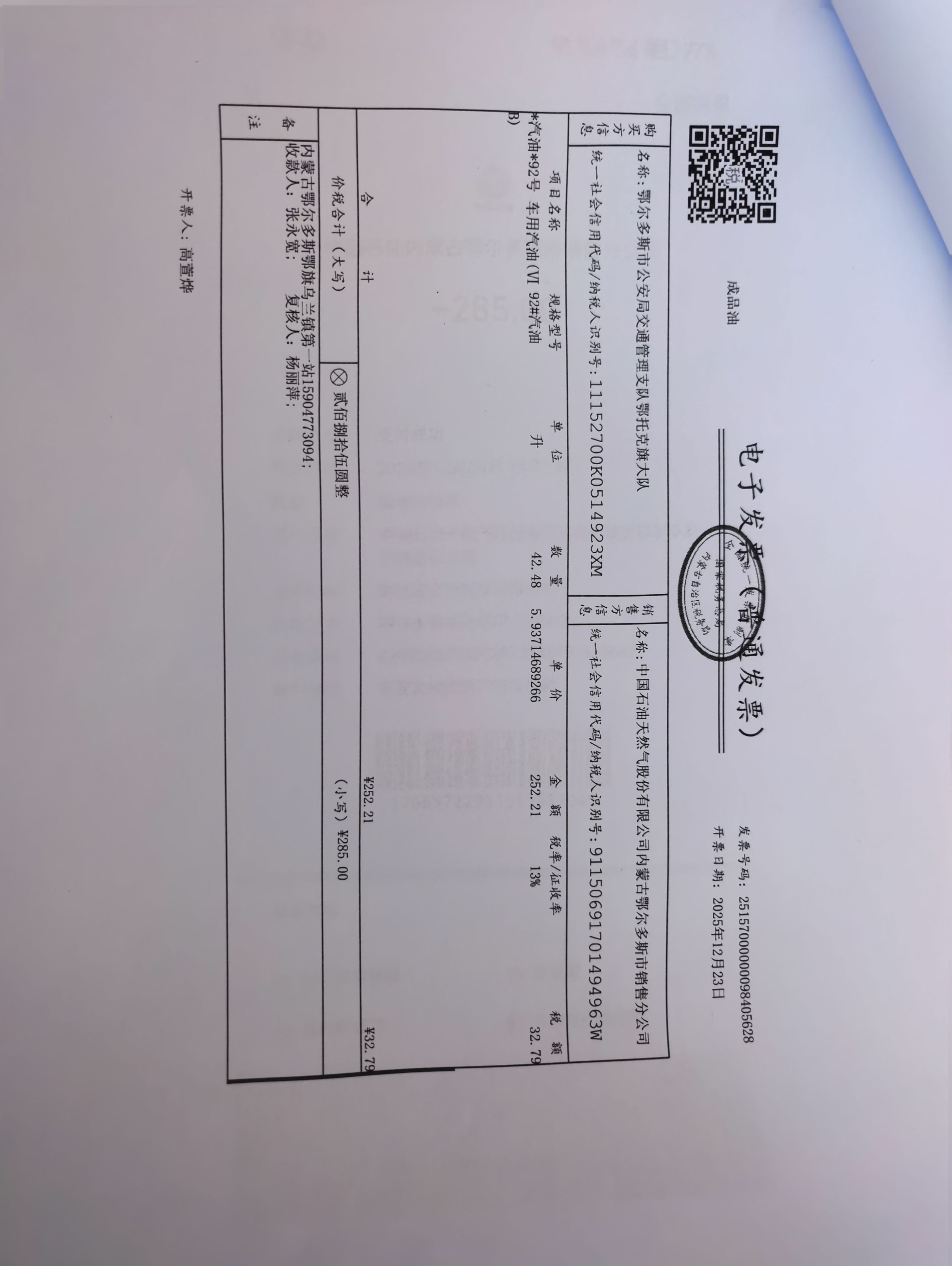 鄂尔多斯市公安局交通管理支队鄂托克旗大队鄂旗交管大队车辆燃油费政府采购...