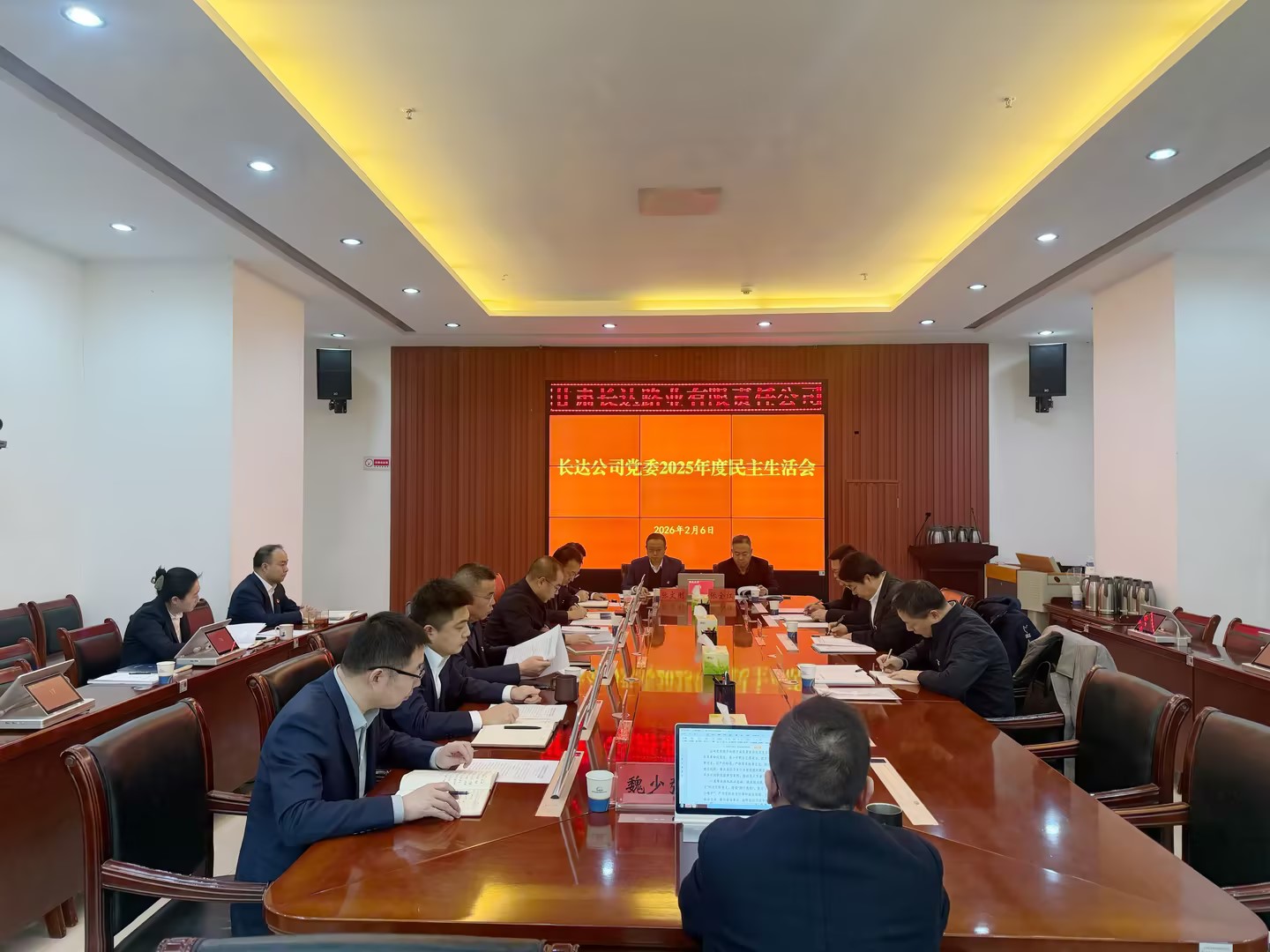 *月*日,长达公司党委召开****年度民主生活会。会议深入学习贯彻习近平新时代中国特色社会主义思想,紧扣会议主题,紧密联系公司“十五五”开局与深化改革实际,进行了一次深刻的党性检视、思想淬炼和作风整肃。会议发扬自我革命精神,严肃认真开展批评和自我批评,着力增强党委班子的政治功能和组织功能,为奋进新征程凝聚共识与力量。集团公司党委第四督导组到会指导并讲话,公司党委书记、董事长姜虎主持会议并作表态发言。