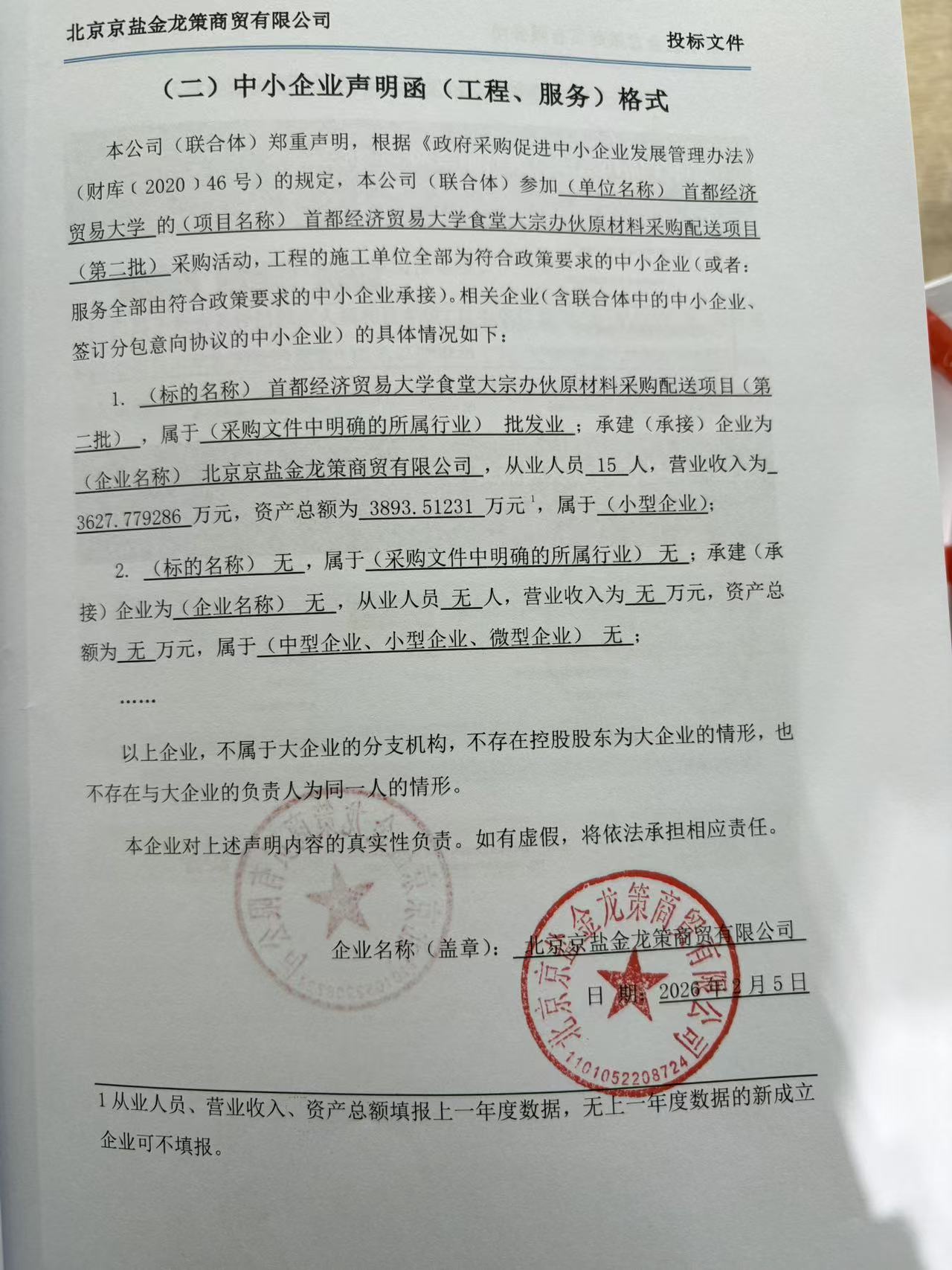 | 北京京盐金龙策商贸有限公司 | **% | 详见招标文件 |