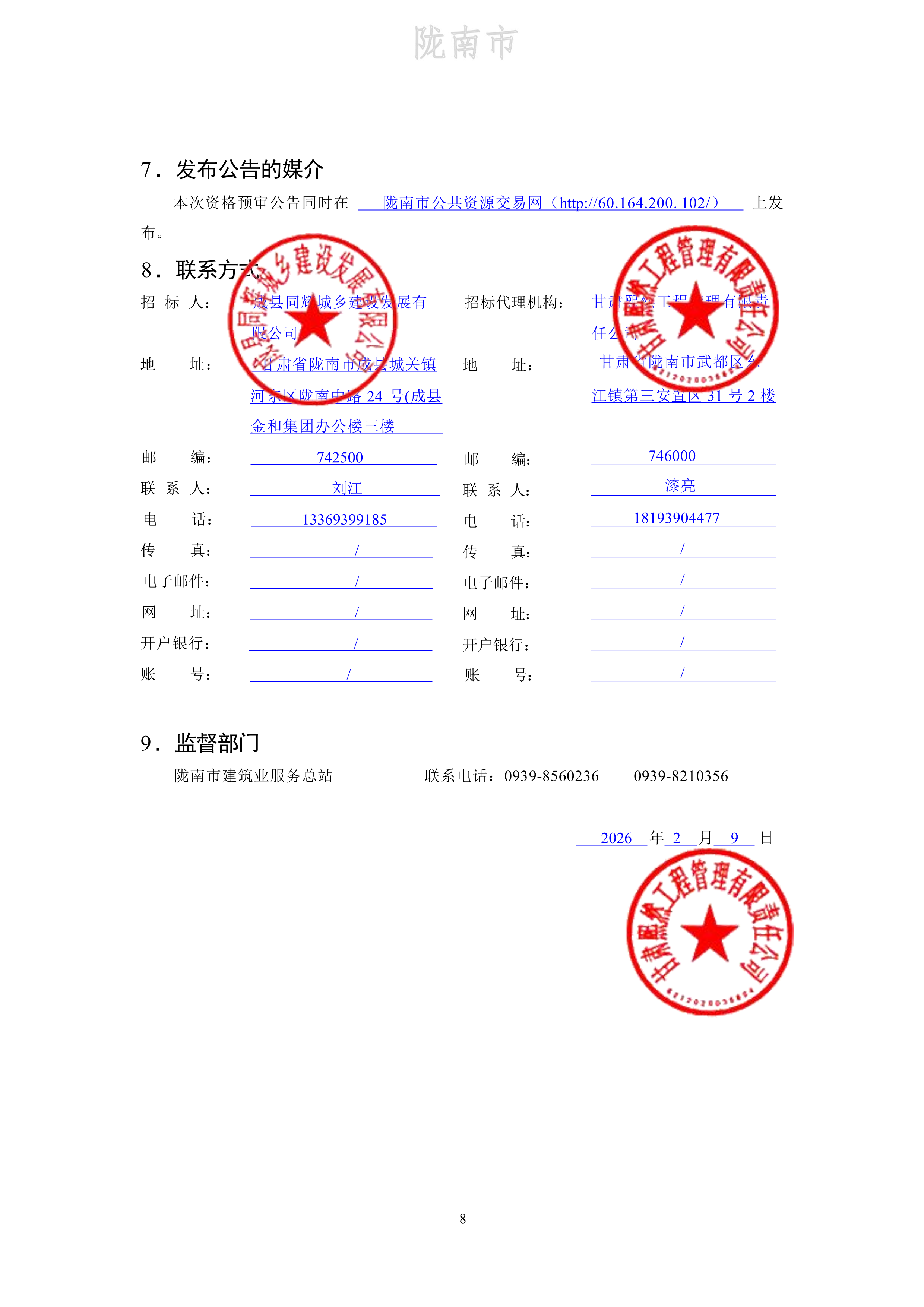 甘肃/陇南 招标采购