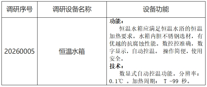 中日友好医院对恒温水箱设备市场调研公告