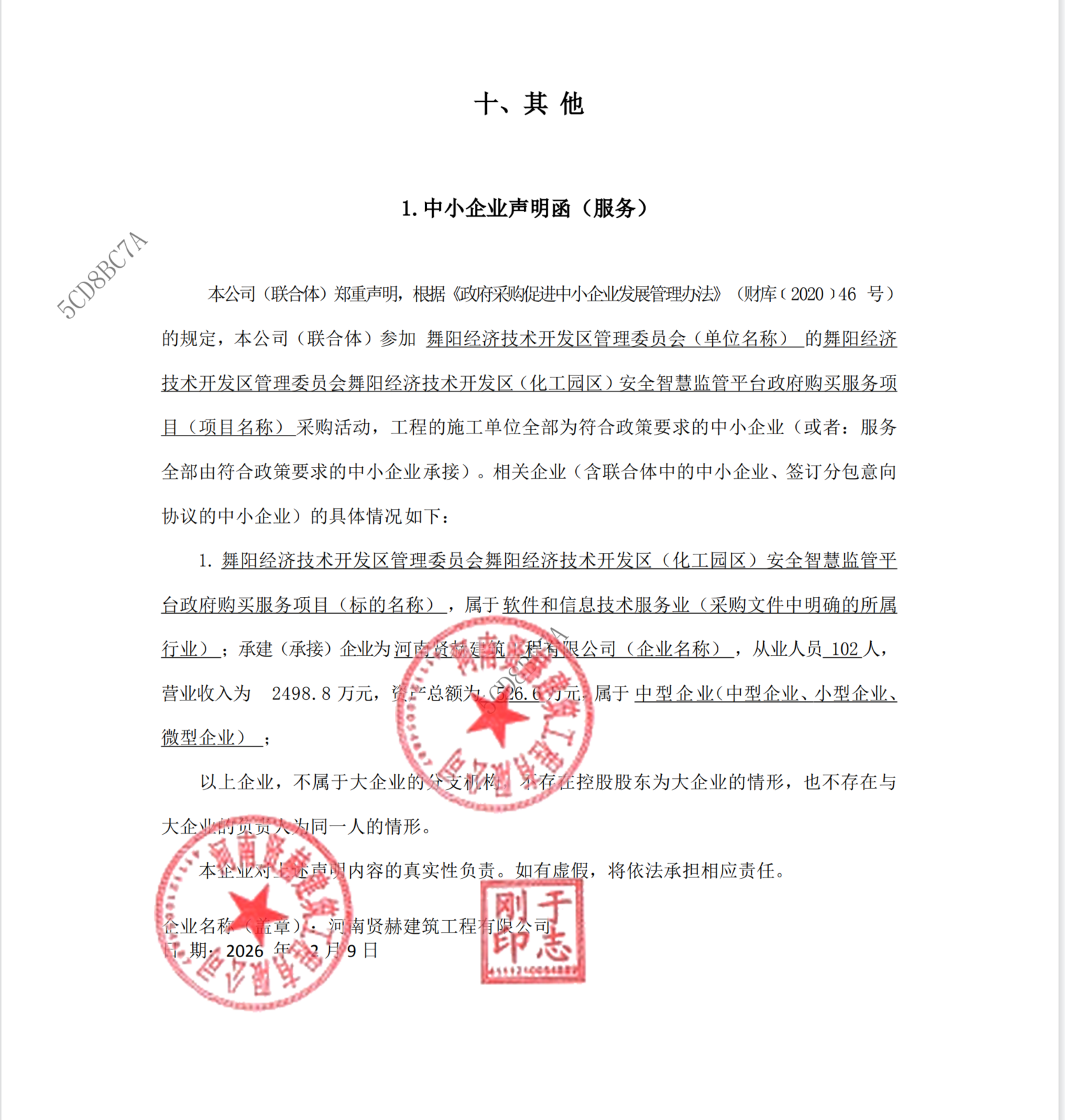 | *、采购项目名称:舞阳经济技术开发区管理委员会舞阳经济技术开发区(化工园区)安全智慧监管平台政府购买服务项目 | |||||||||||||||||||||||||||||||