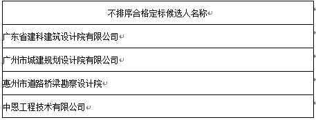 定标候选人* | 惠州市道路桥梁勘察设计院 | ||