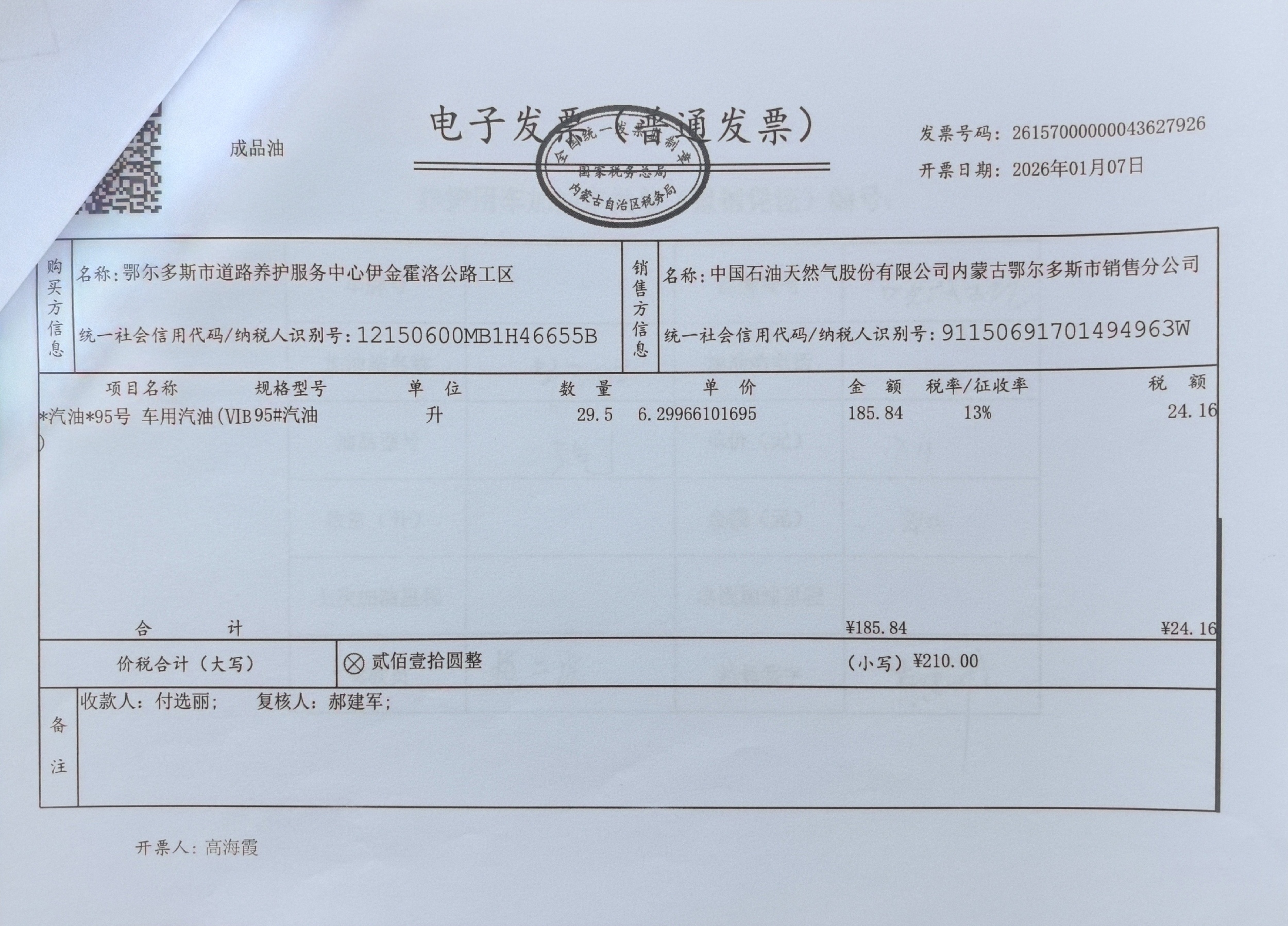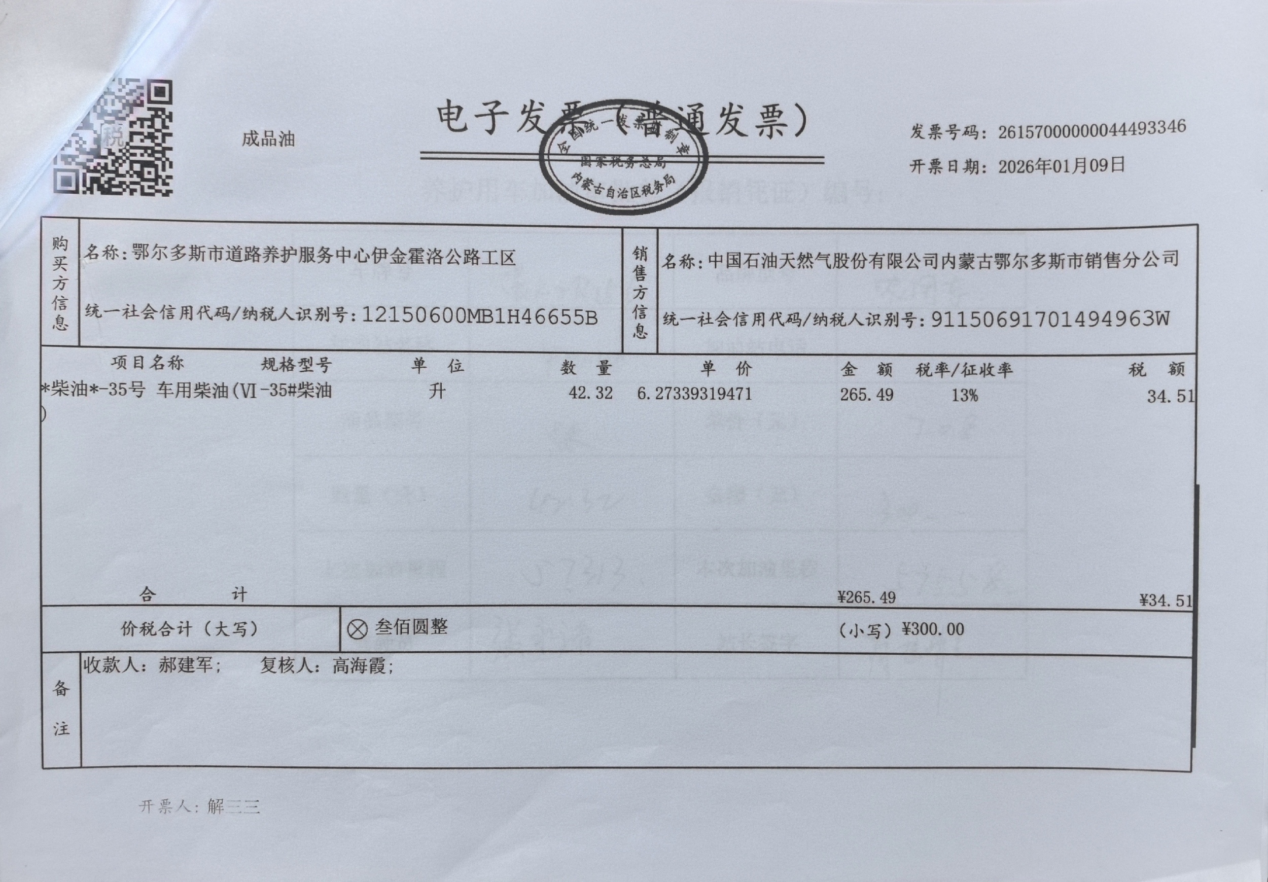 鄂尔多斯市道路养护服务中心伊金霍洛公路工区车辆加油服务(新街养护站)政府采购合同公告