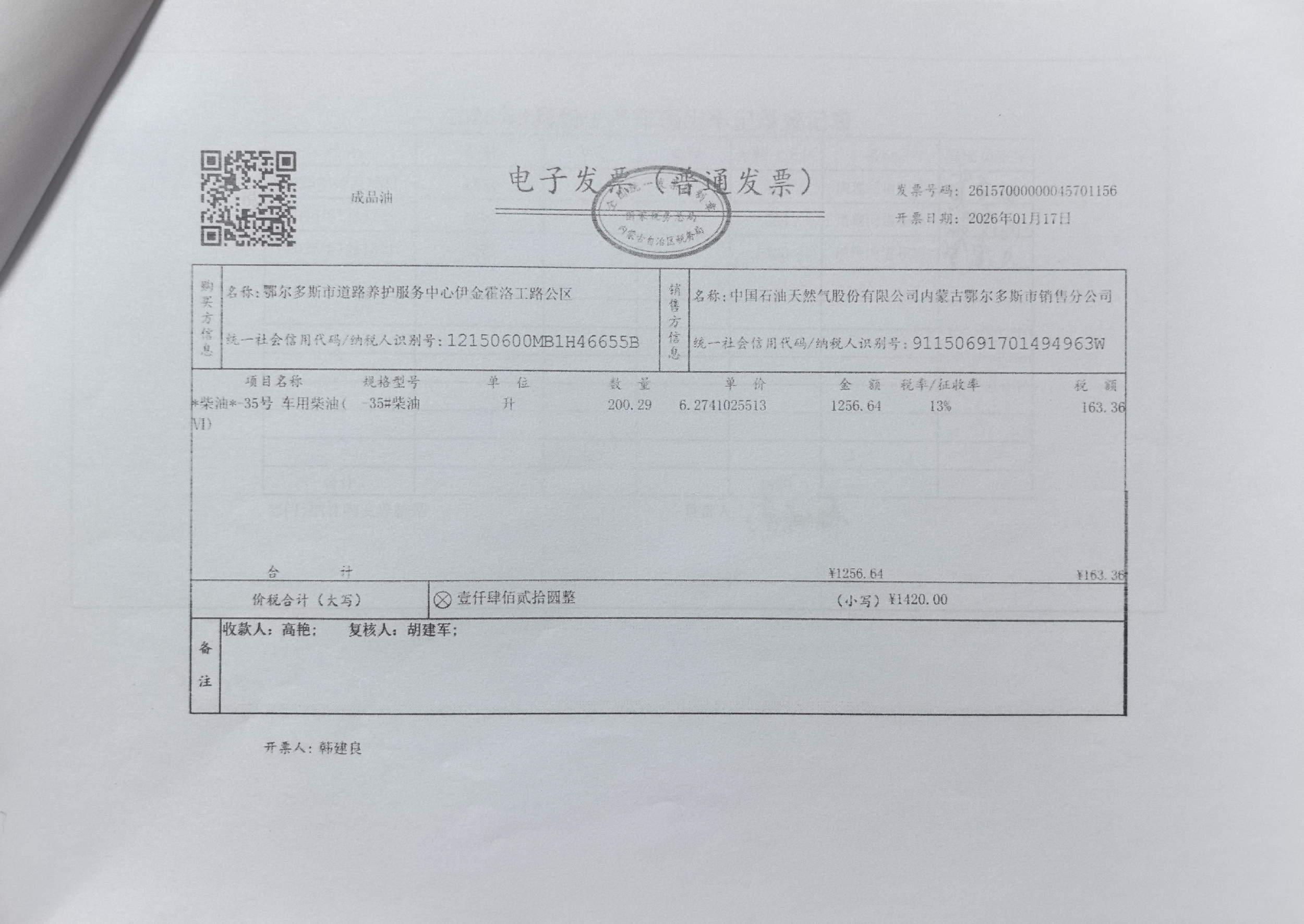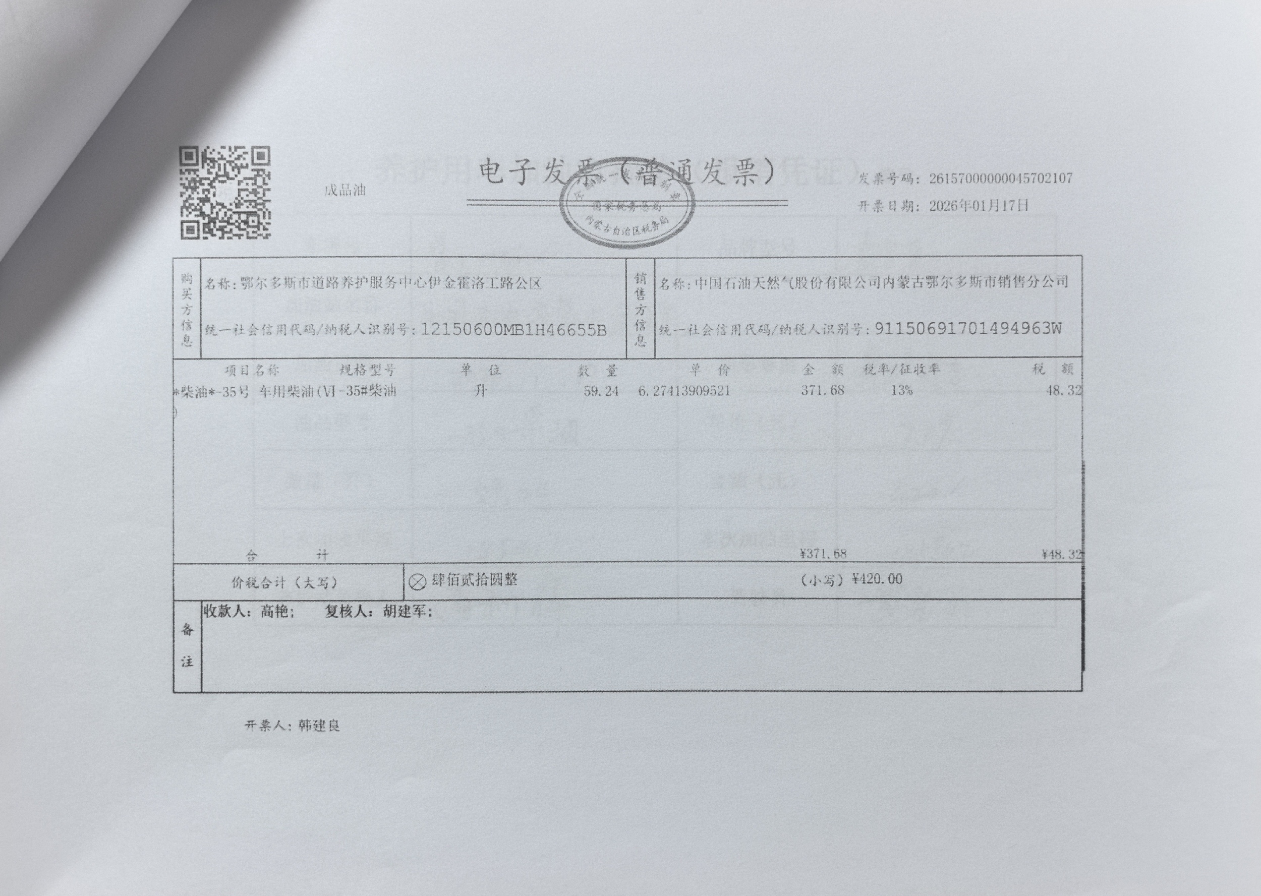 鄂尔多斯市道路养护服务中心伊金霍洛公路工区车辆加油服务(纳林陶亥养护站)政府采购合同公告