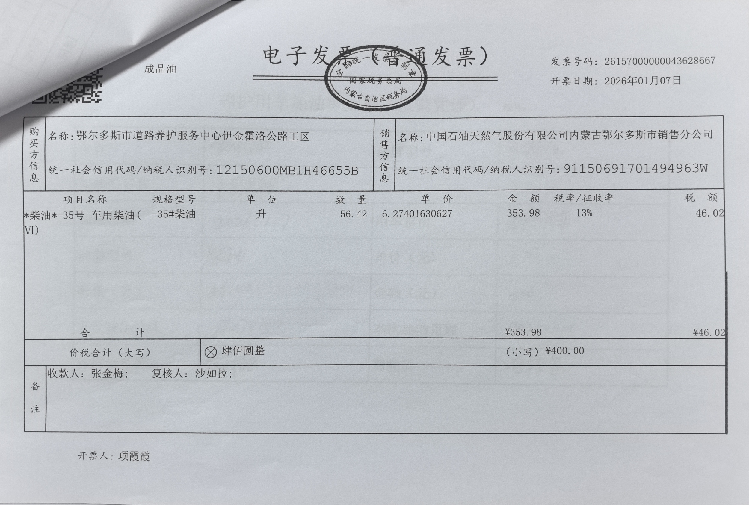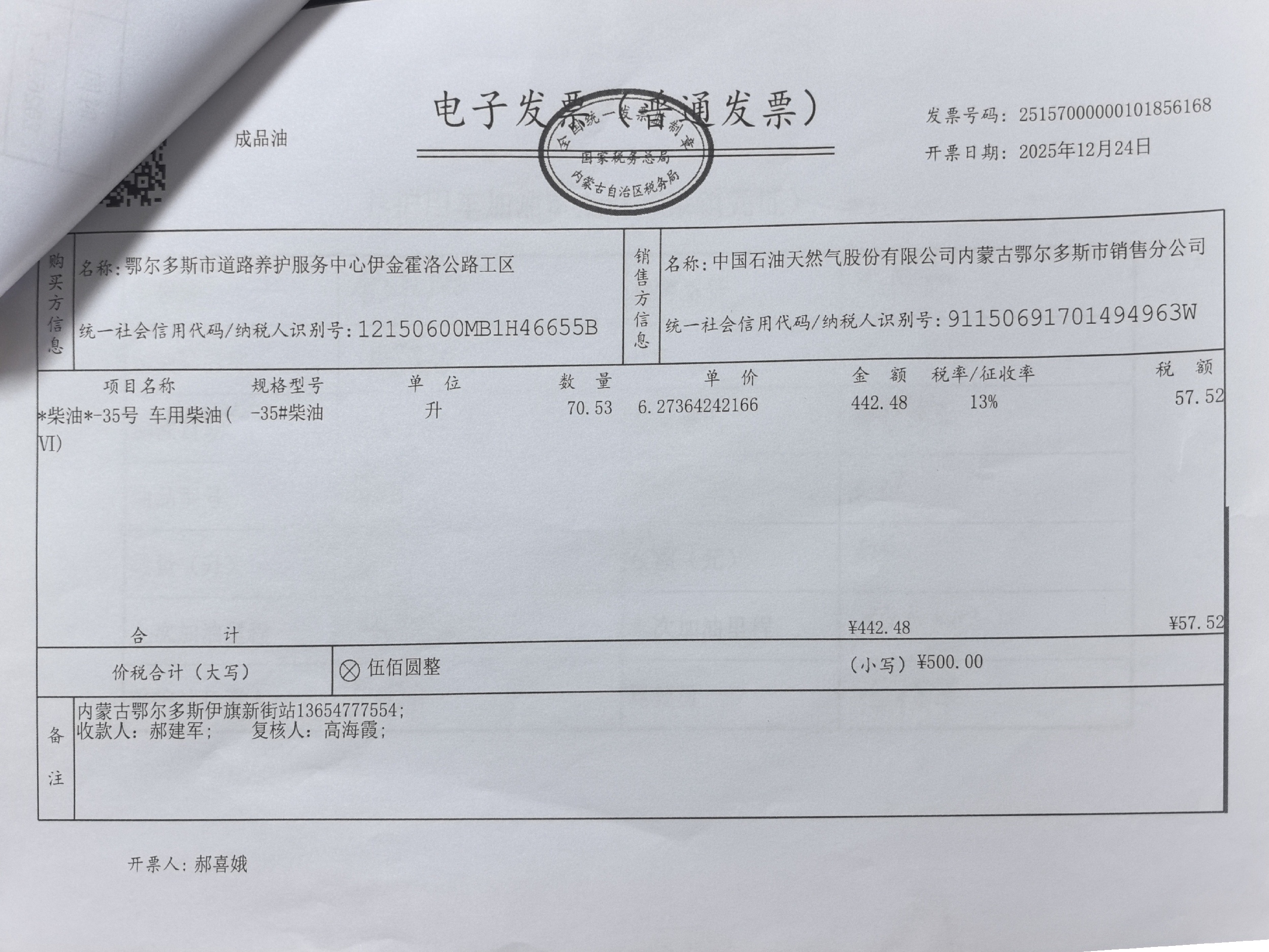 鄂尔多斯市道路养护服务中心伊金霍洛公路工区车辆加油服务(阿镇养护站)政府采购合同公告