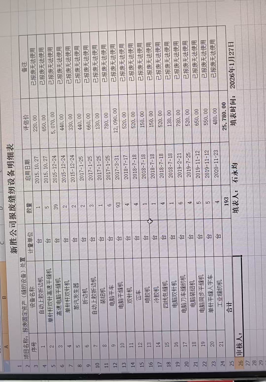 | 资产详情描述 处置一批废旧缝纫设备 |