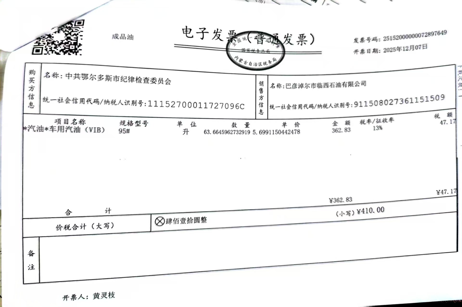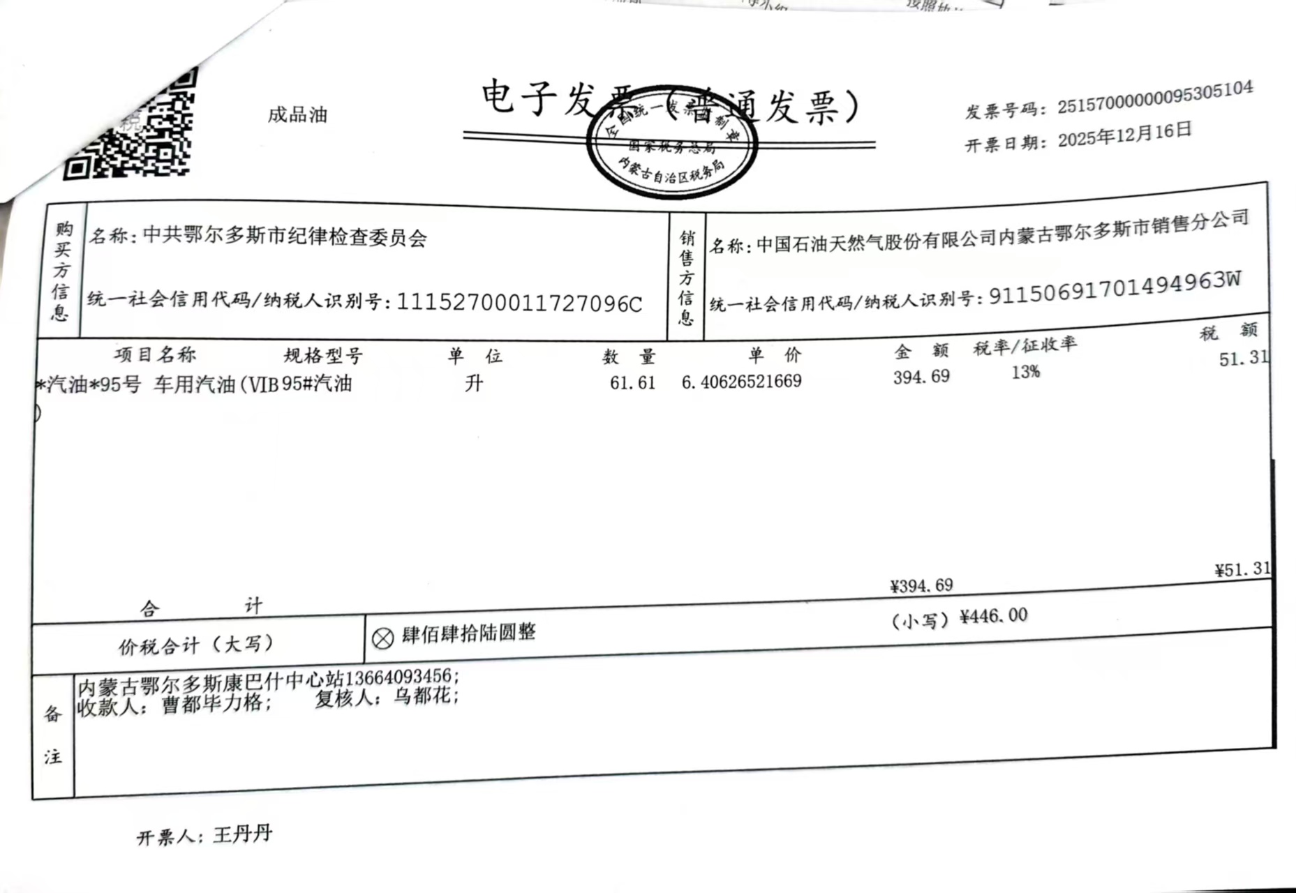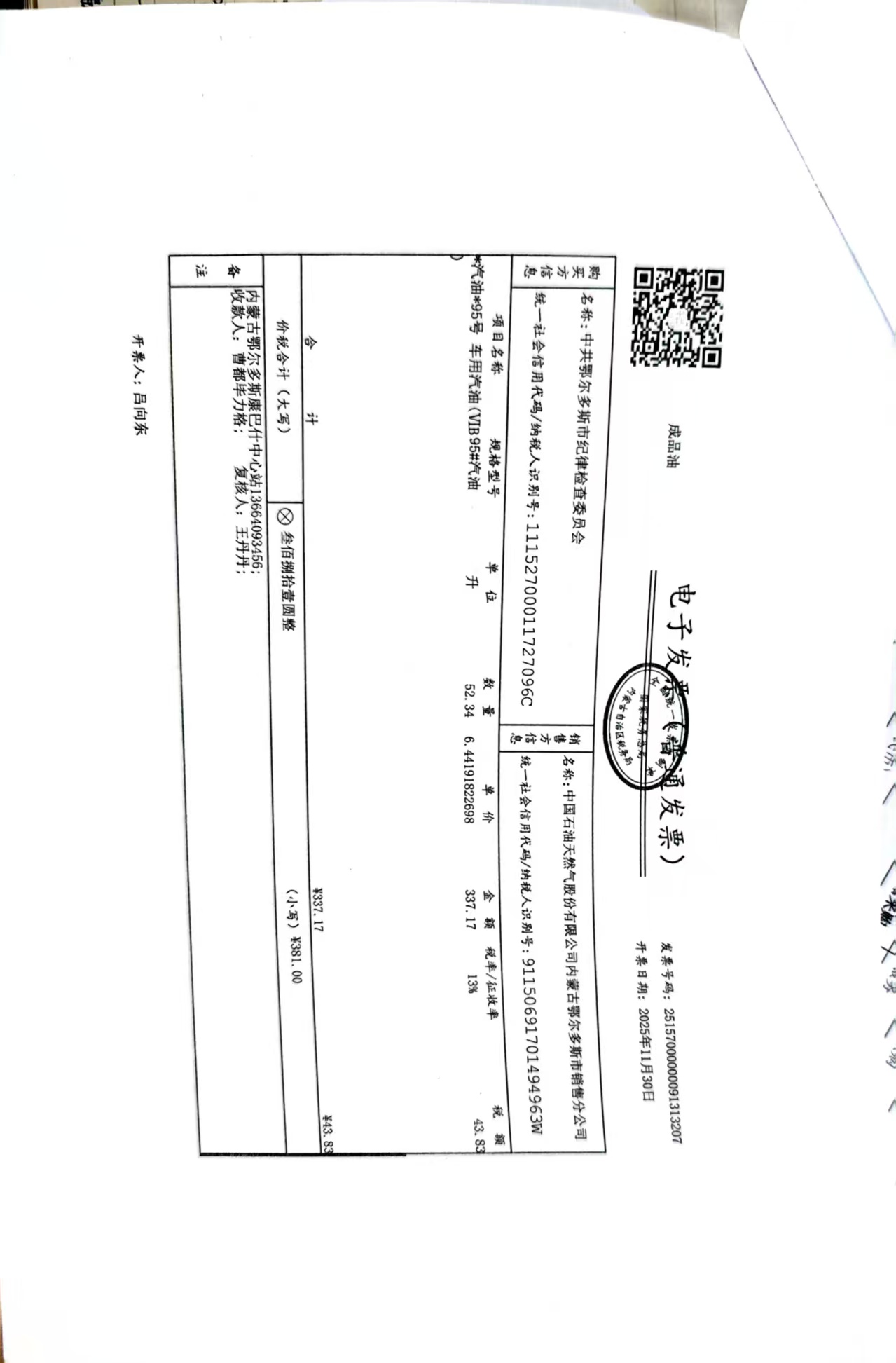 中共鄂尔多斯市纪律检查委员会内蒙古增值税电子普通发票(成品油)政府采购...