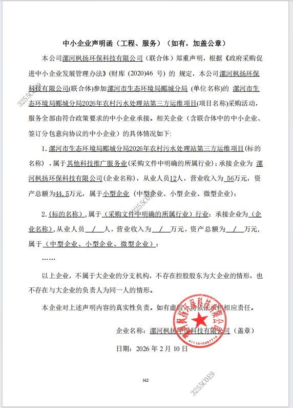 | *、采购项目名称:漯河市生态环境局郾城分局****年农村污水处理站第三方运维项目 | |||||||||||||||||||||||||||||||