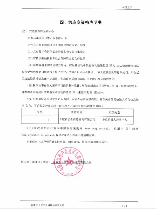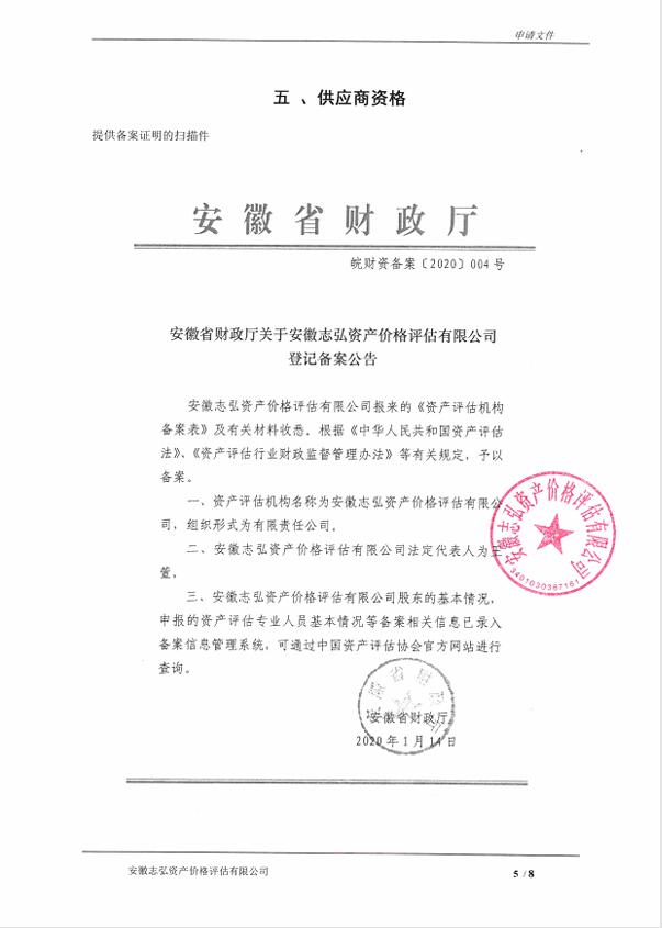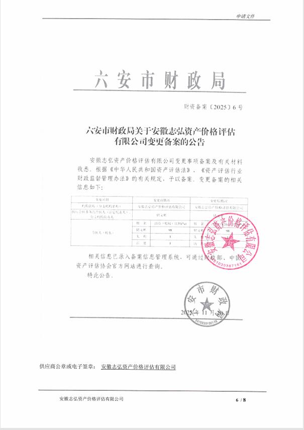 供应商名称:安徽志弘资产价格评估有限公司