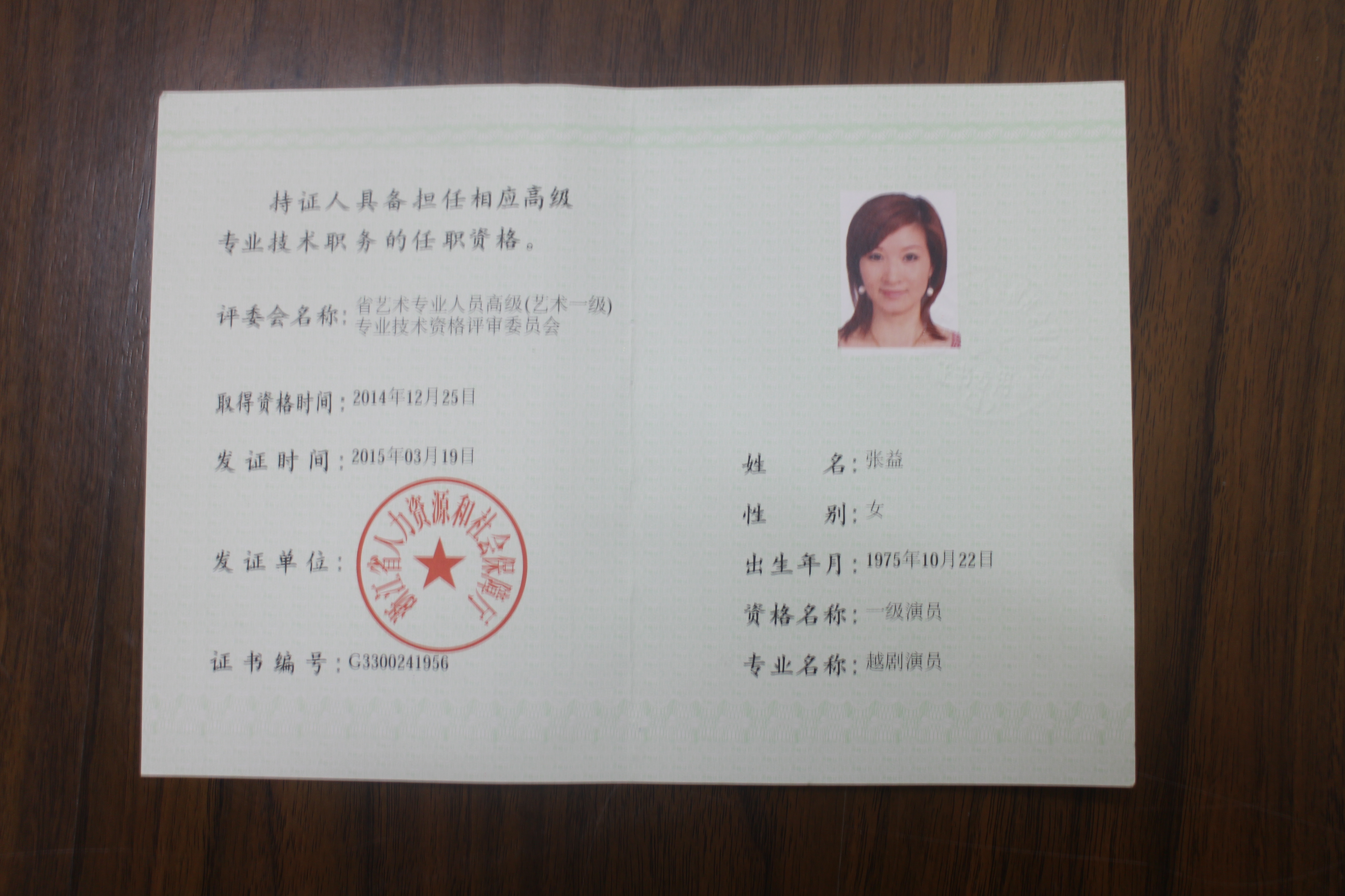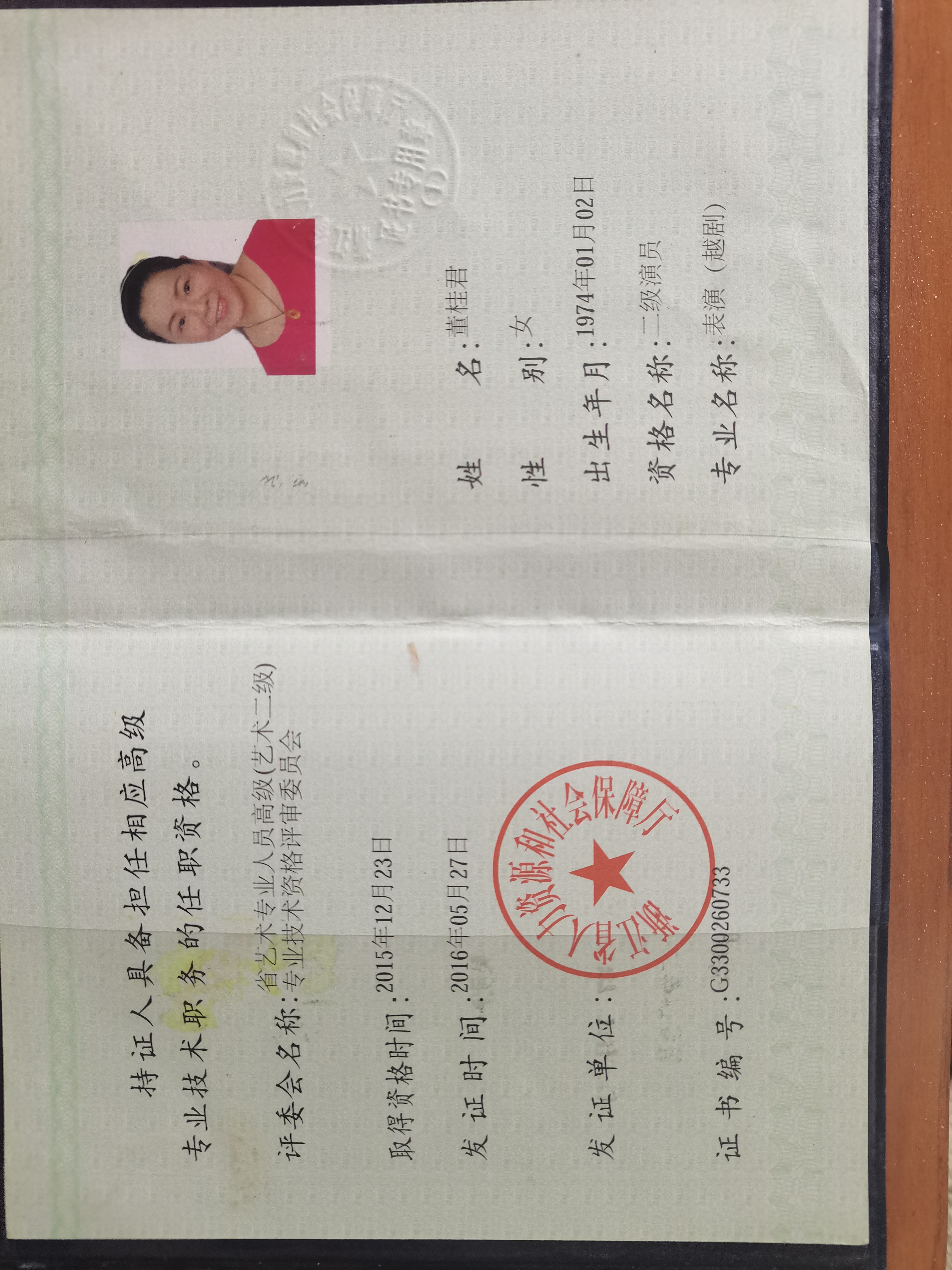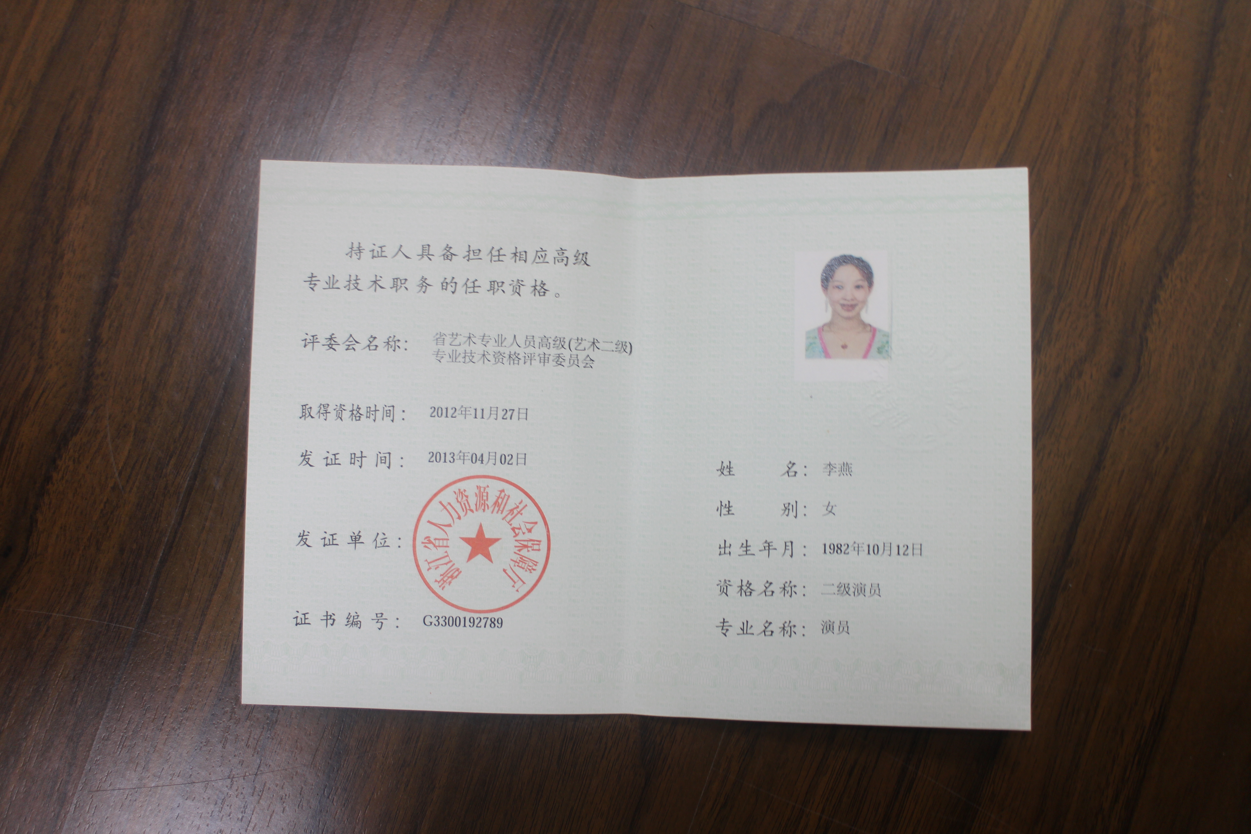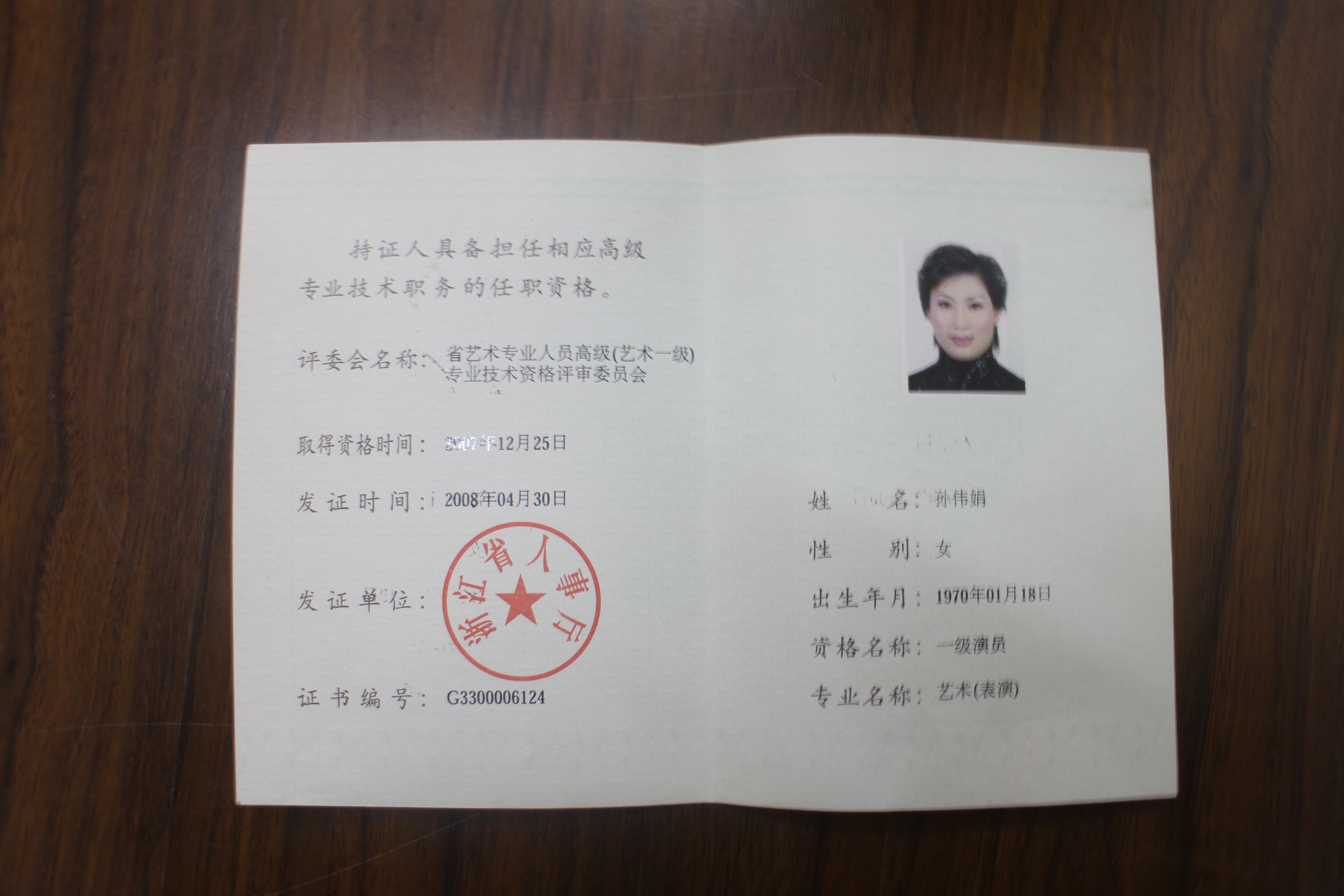 级演职人员或获省级专业奖项荣誉演员:级演员*