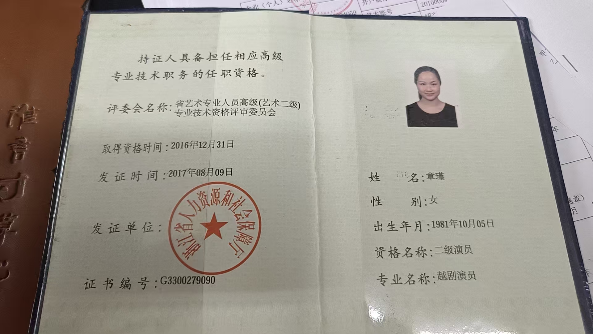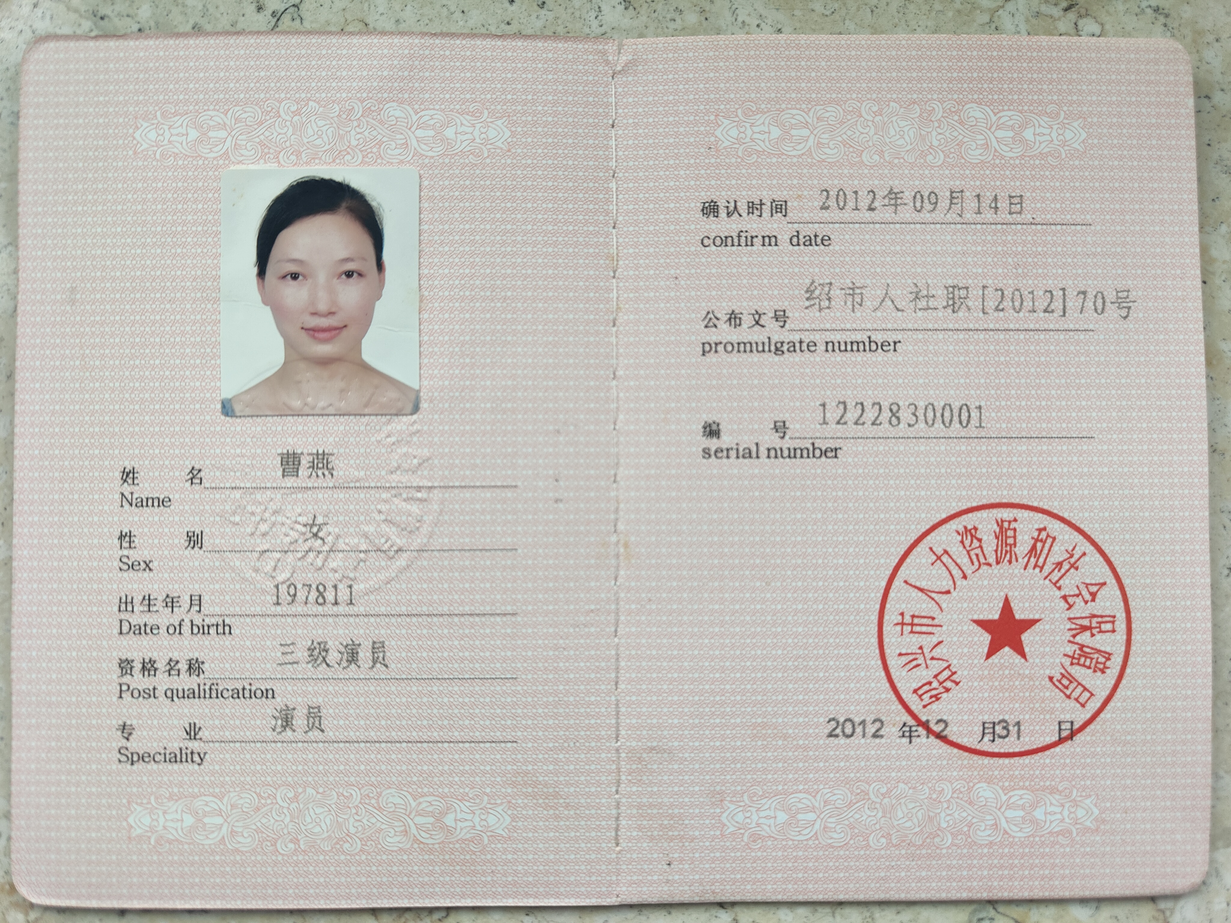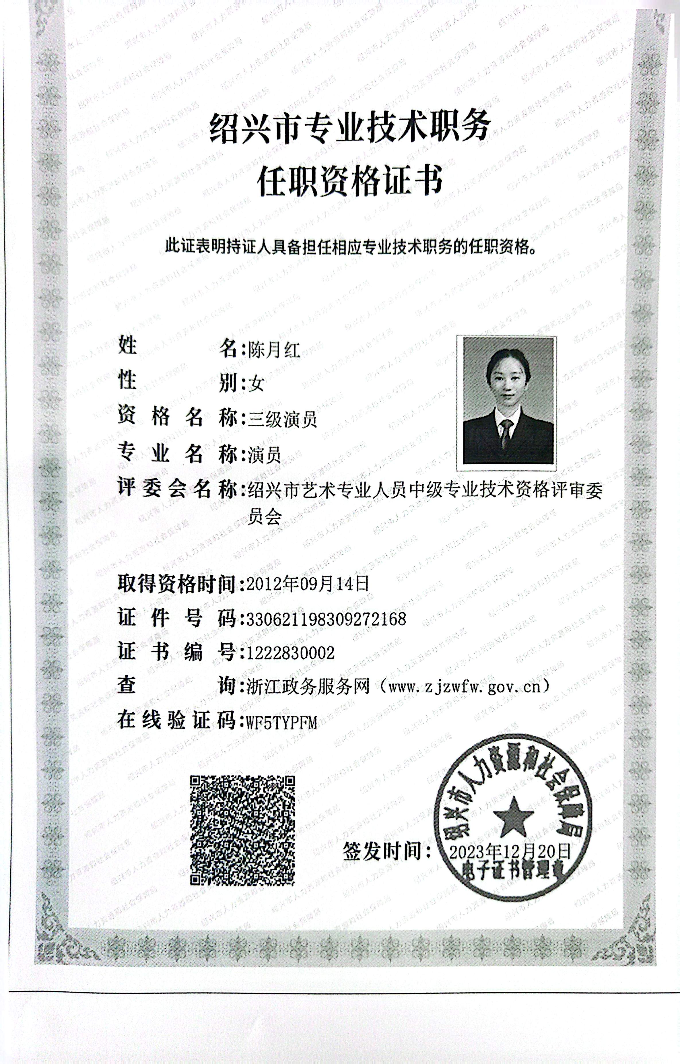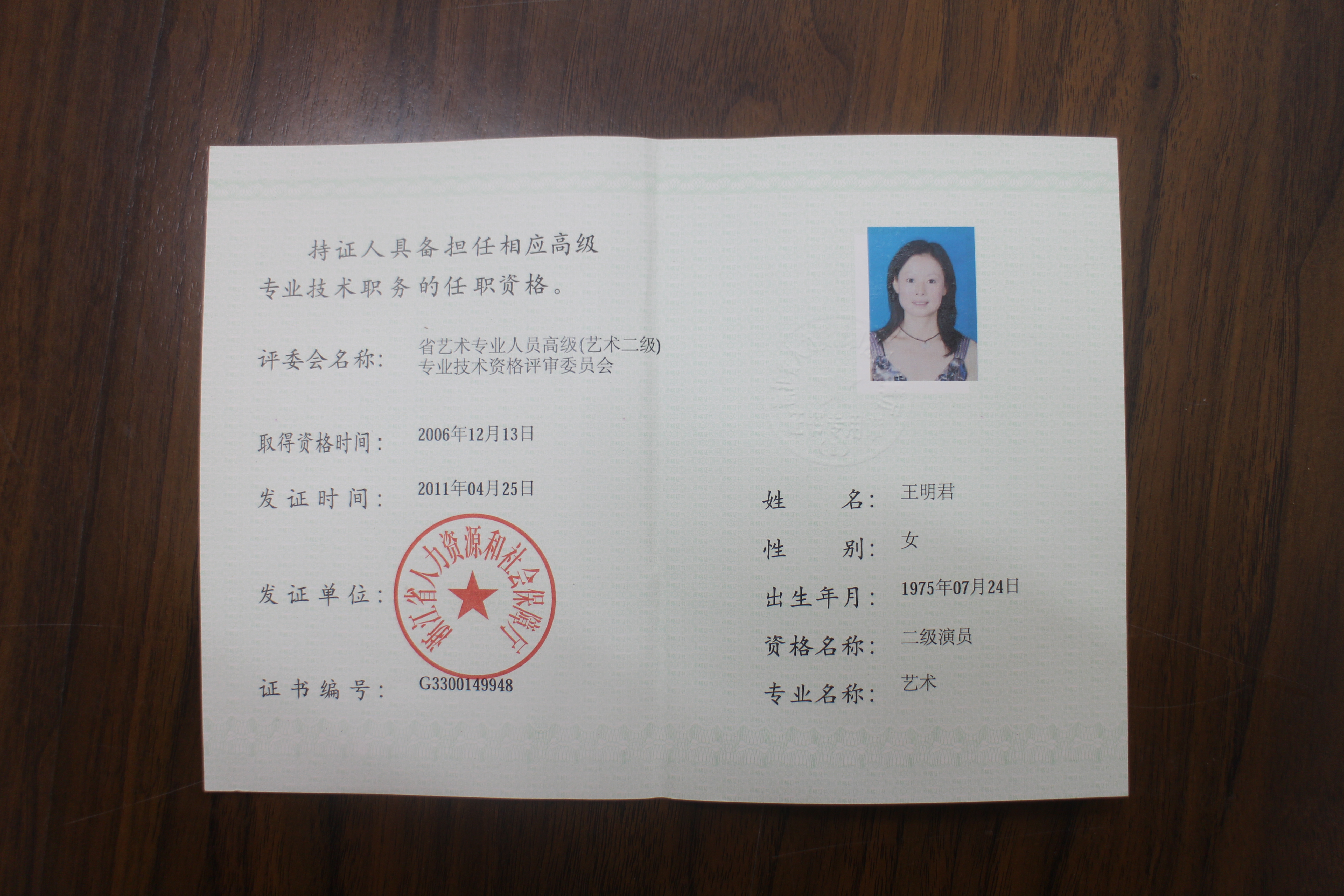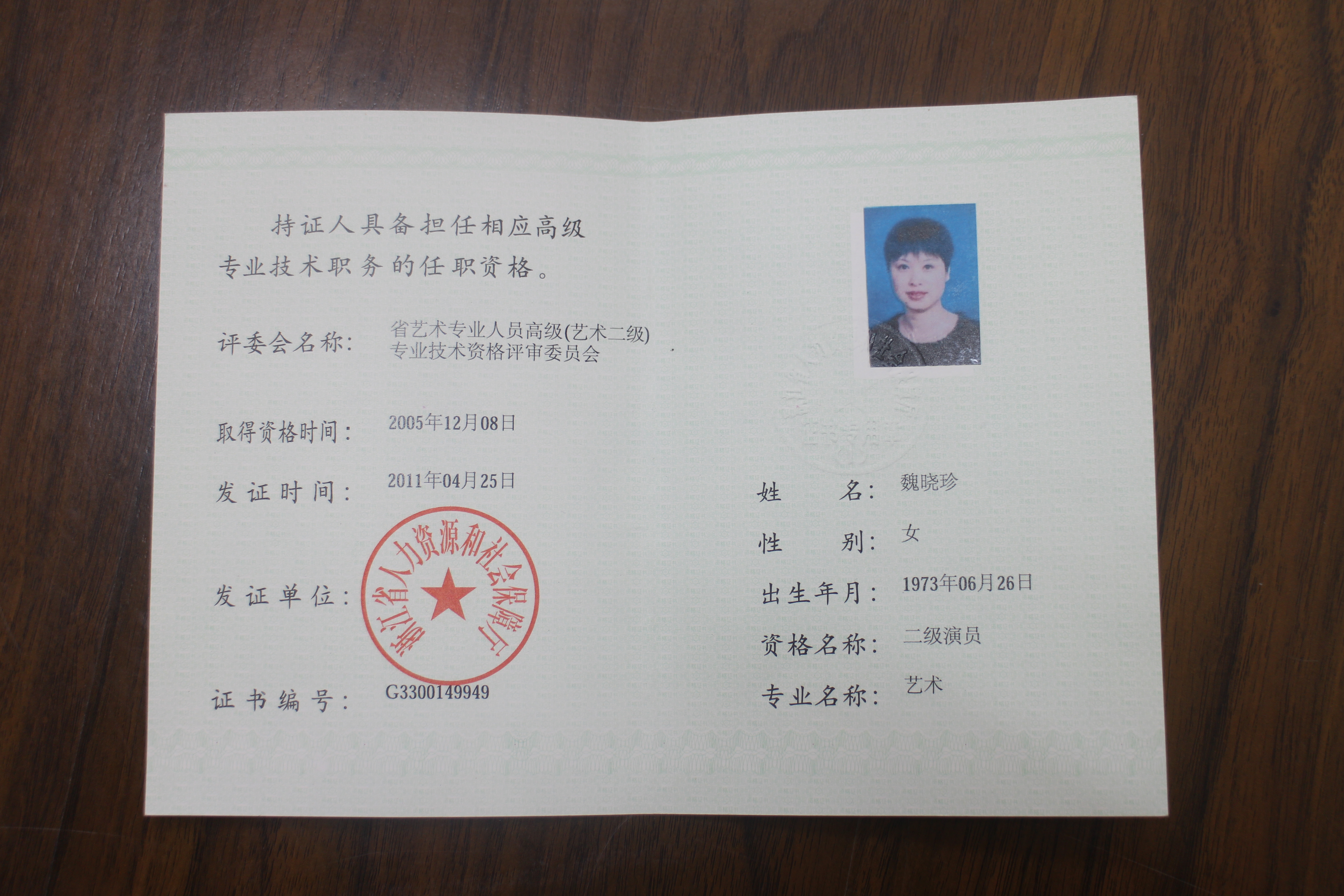 级演职人员或获省级专业奖项荣誉演员:级演员*