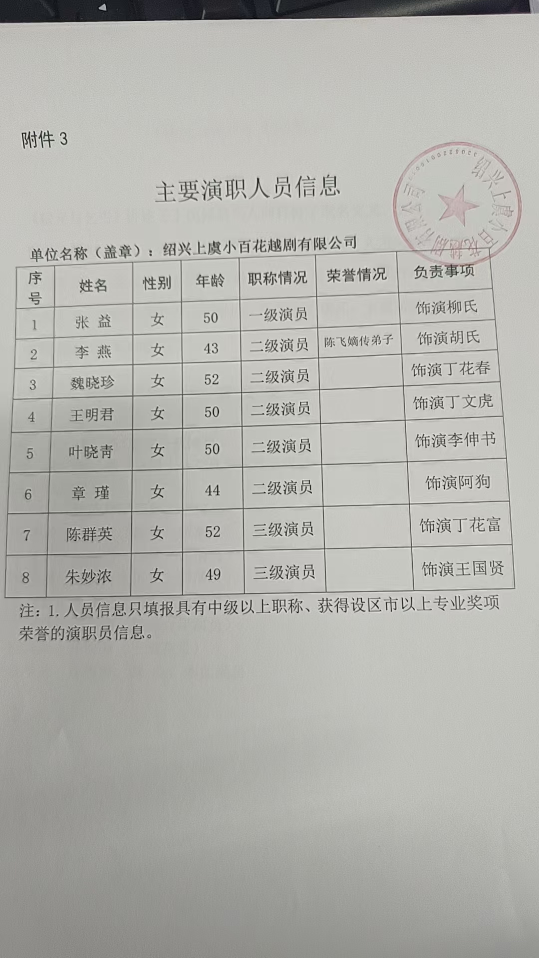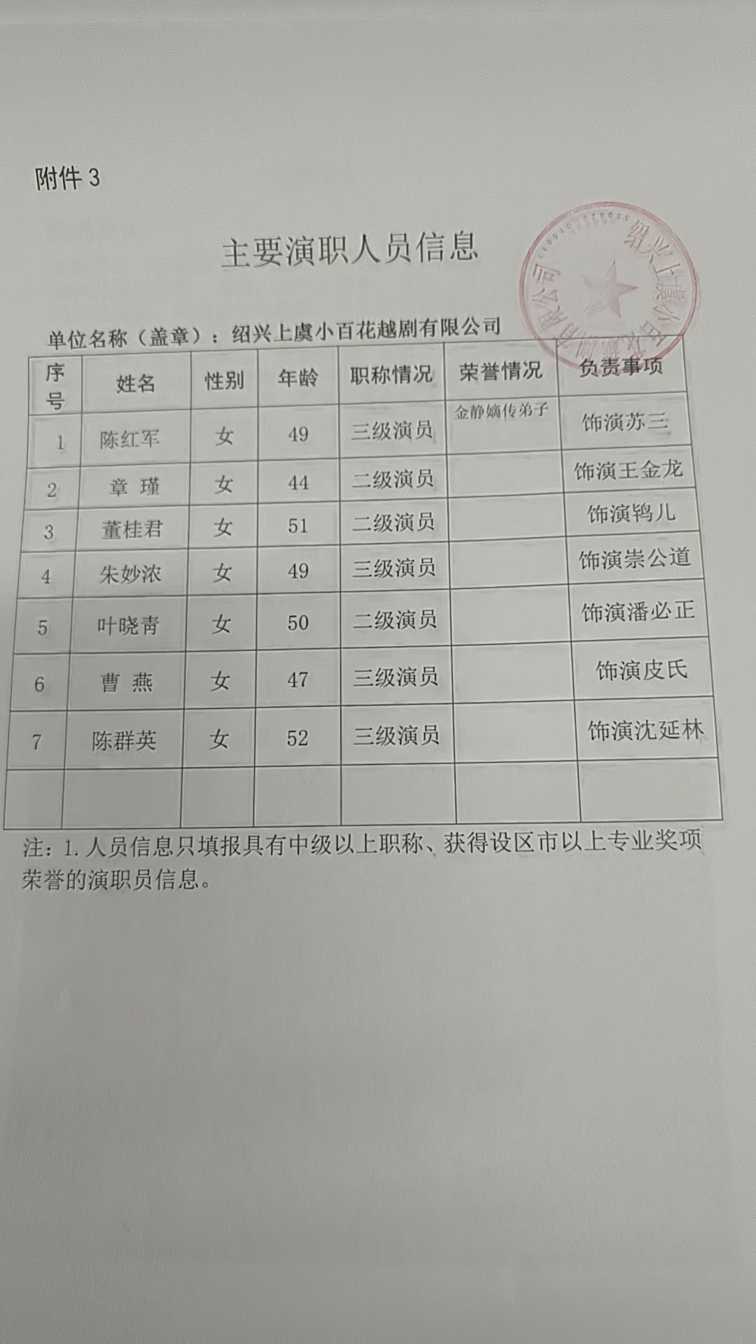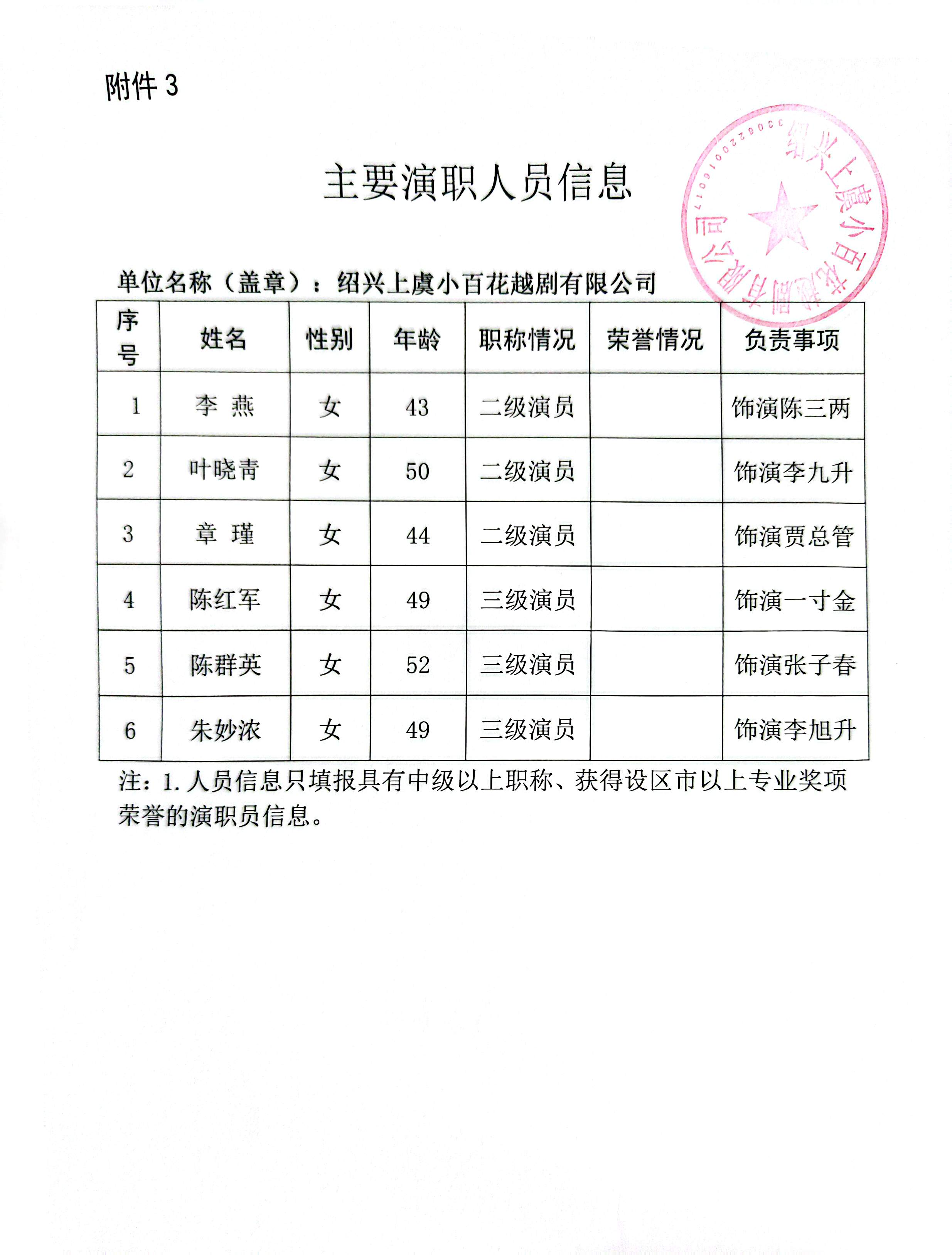 演职人员信息(按《公告》附件*格式填写):新三笑演员信息****.***