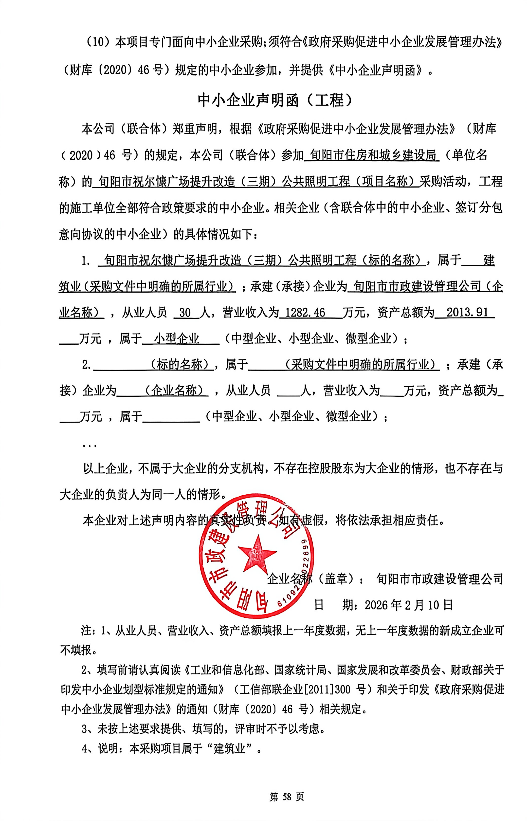 旬阳市祝尔慷广场提升改造(三期)公共照明工程中标(成交)结果公告