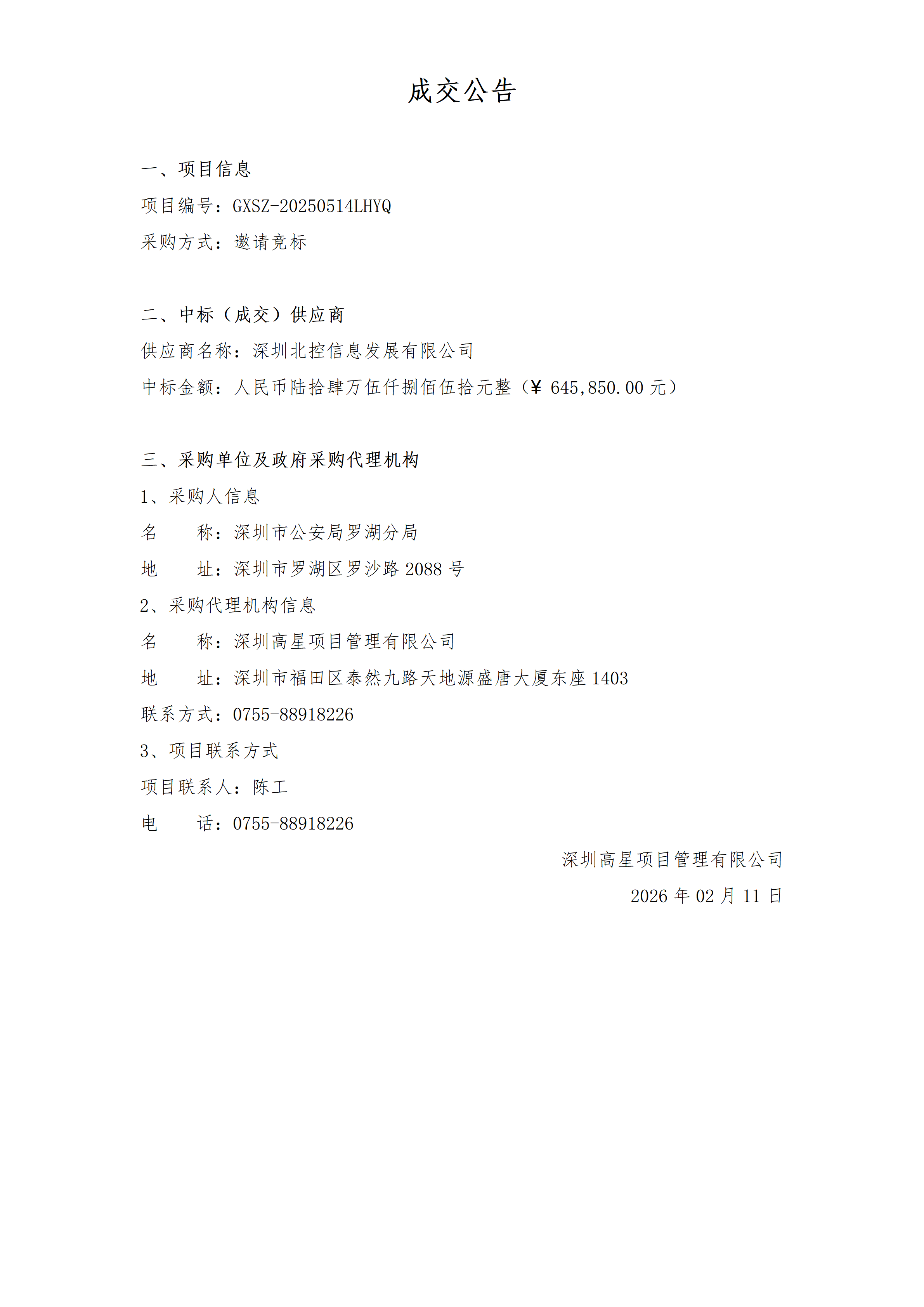 广东/深圳 中标结果