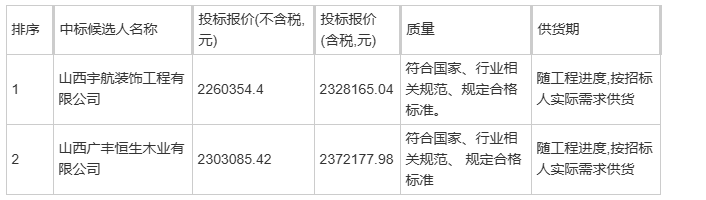 山西省汾阳医院外科住院楼建设项目储物柜、护士台、洗面台招标采购中标候选人公示