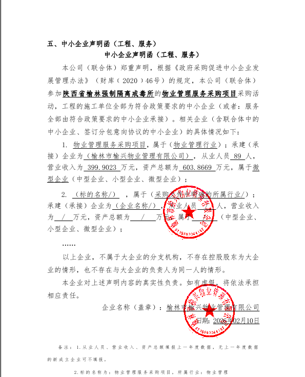 陕西省榆林强制隔离戒毒所物业管理服务采购项目中标(成交)结果公告
