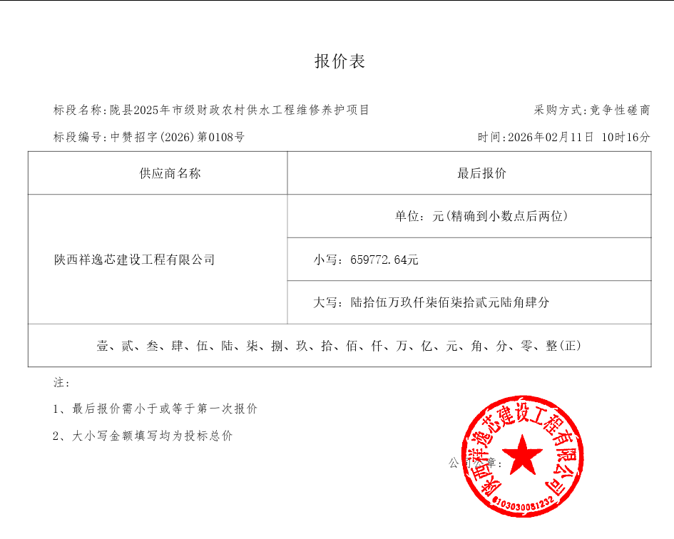 陇县2025年市级财政农村供水工程维修养护项目中标(成交)结果公告