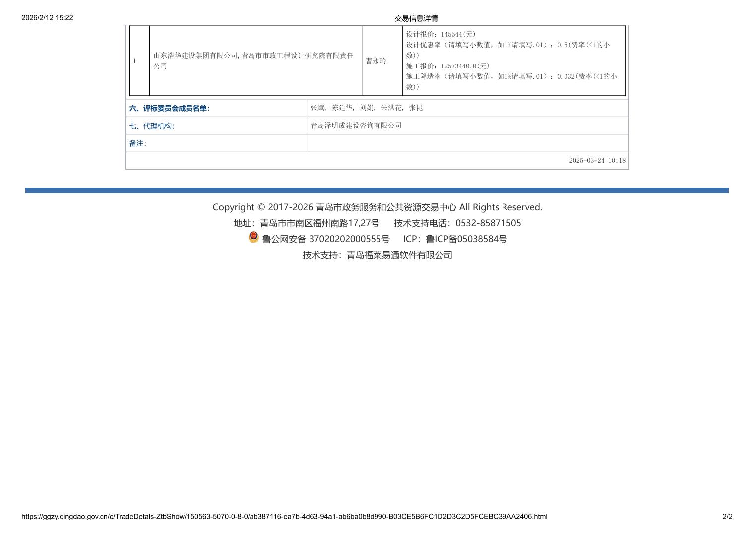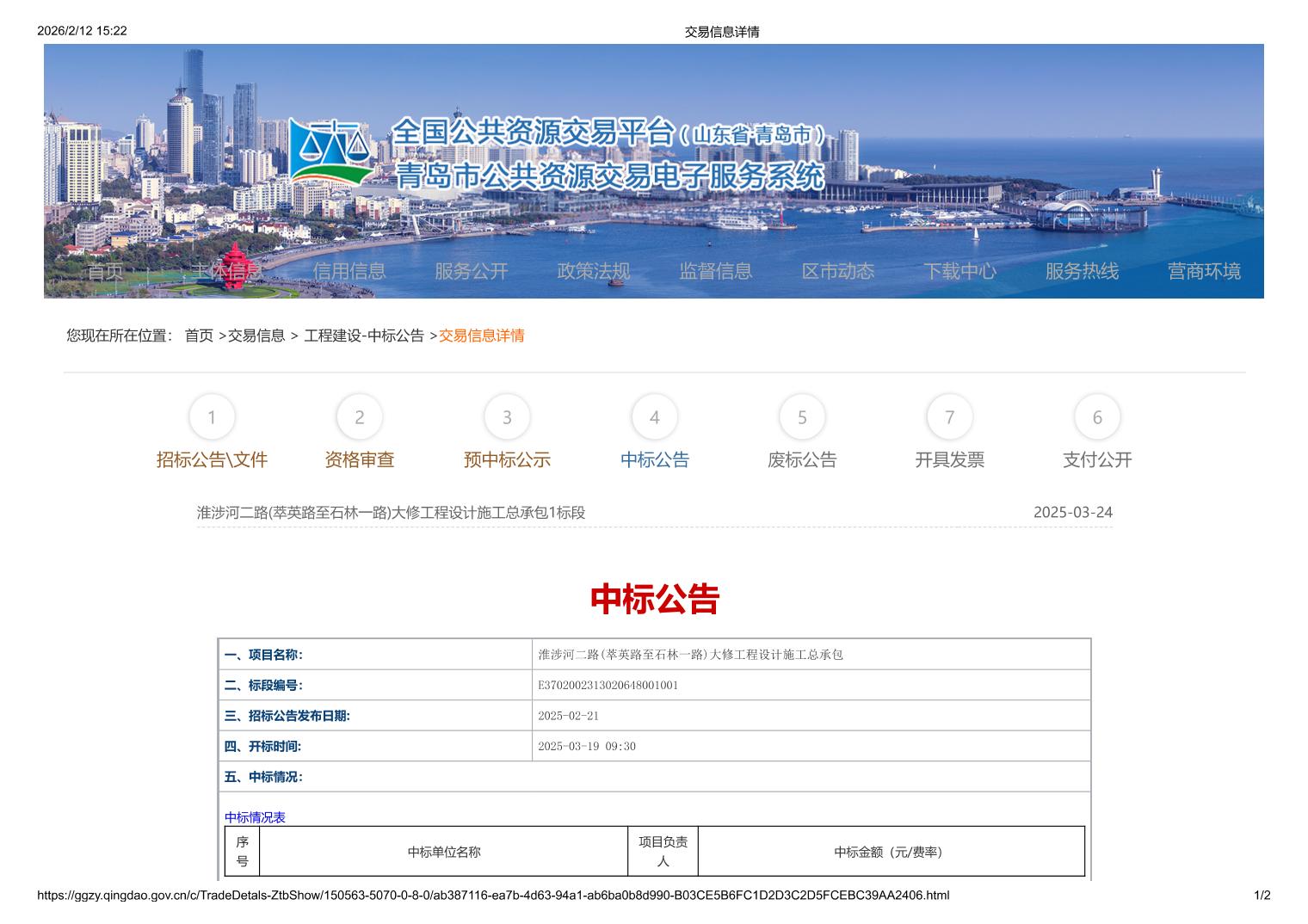 山东/青岛 中标结果