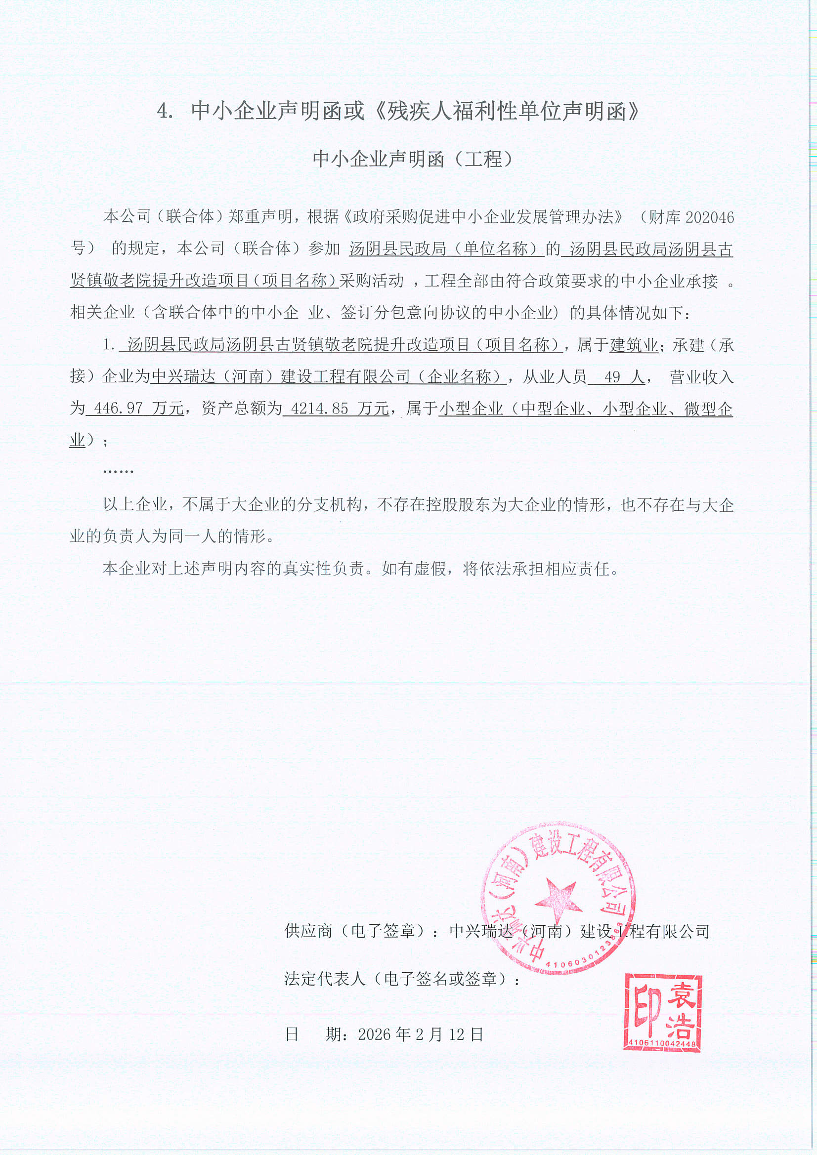汤阴县民政局汤阴县古贤镇敬老院提升改造项目-成交公告