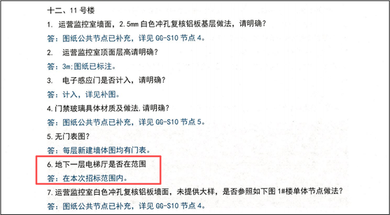 答:各单体地下一层电梯厅均不在本次招标范围内,已与设计院确认此条图纸答疑回复有误。