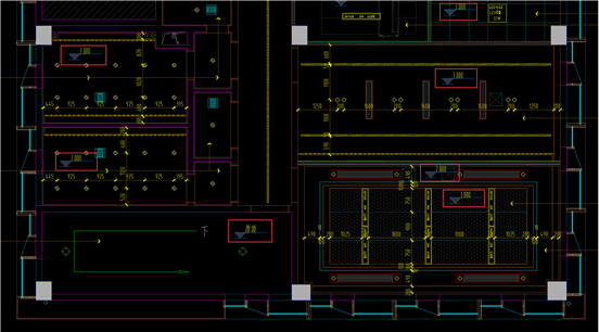 答:天花平面布置图已体现吊顶标高,需要找到标高箭头,以**号楼*层天花平面布置图为例,截图如下: