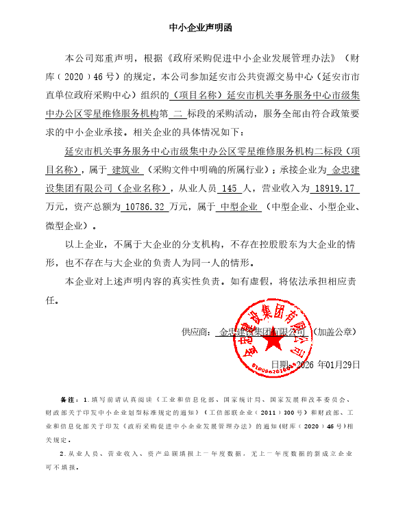 延安市机关事务服务中心市级集中办公区零星维修服务机构中标(成交)结果公告