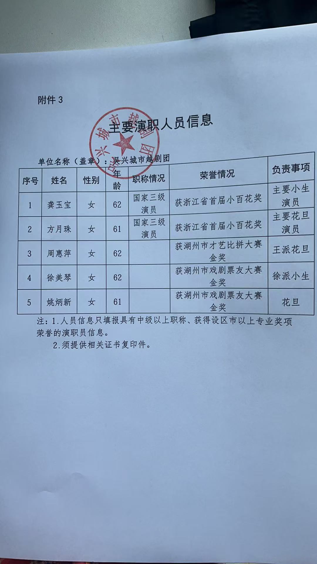 演职人员信息(按《公告》附件*格式填写):附件*:主要演职人员信息.***