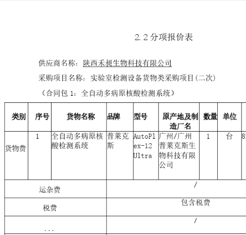合同包*(合同包*:全自动多病原核酸检测系统):
