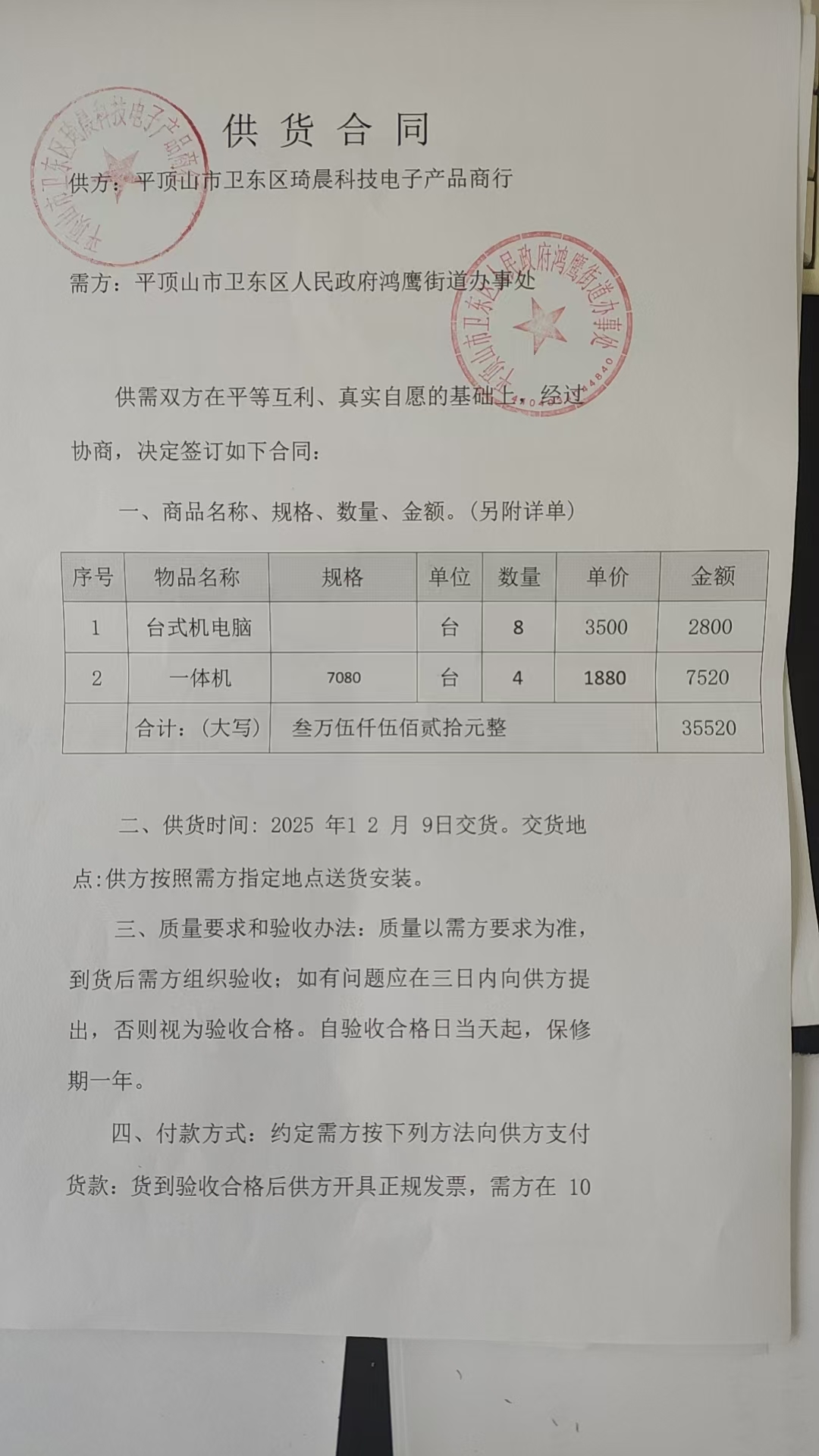 | *.供应商(乙方):平顶山市卫东区琦晨科技电子产品商行 | ||||||||||||||||||