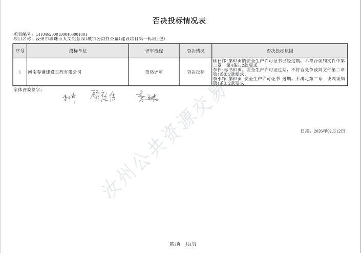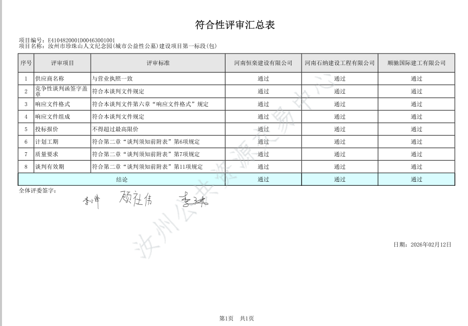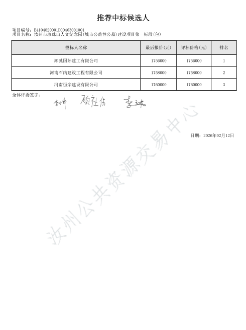 | *.开标记录表[详见附件*];*.初步评审表[详见附件*];*.谈判小组对所有响应人响应文件的最终报价排序[详见附件*];*.各谈判小组成员对所有响应人响应文件的分项评分明细[详见附件*];*.符合性审查汇总表[详见附件*];*.响应人的响应文件被否决原因[详见附件*];*.被推荐响应人名单及理由[详见附件*];*.根据评审结果、成交结果公告,按照国家有关规定,确定顺驰国际建工有限公司为成交人,其他响应人未成交。*.受理投诉监督管理部门:汝州市财政局 联系电话:************,************ 邮箱地址:********@***.*** 联系地址:汝州市望嵩中路***号 **. 响应人或其他利害关系人对本次公告如有异议,请按中华人民共和国财政部令第**号《政府采购质疑和投诉办法》的相关规定,在规定时间内,向采购人、采购代理机构、政府采购监督部门提出质疑、投诉等事宜。逾期未提交或未按照要求提交的质疑、投诉将不予受理。 | |||||||||||||||||||||||||||||||